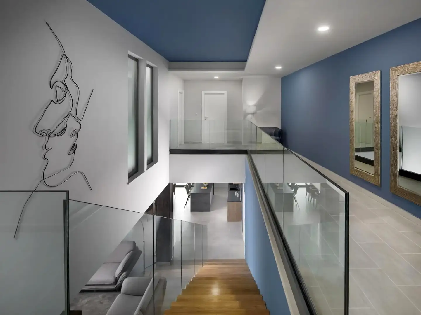 Вилла была построена в период с 2019 по 2022 год, с использованием материалов высшего качества и современных принципов дизайна. Она отличается чистыми архитектурными линиями и интегрирована в естественный склон земли. Ее планировка следует каскадному дизайну, который гармонирует с ландшафтом, максимизируя виды на море и соединяя внутренние и внешние пространства. Дом состоит из двух уровней, с акцентом на открытое планирование, функциональность и естественное освещение. Большие стеклянные стены, высококачественная отделка и тщательно подобранная современная мебель создают элегантную, светлую и комфортную атмосферу.