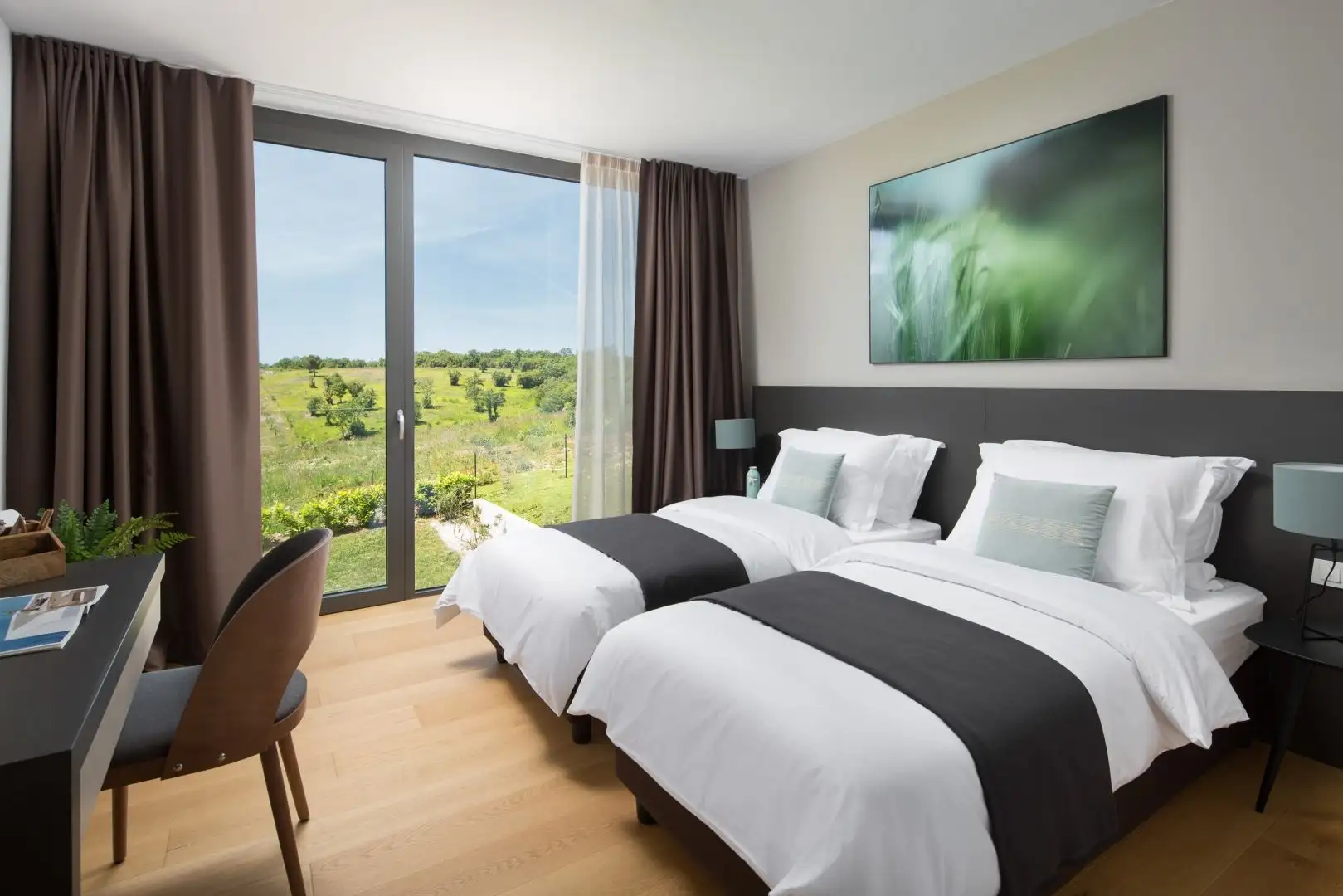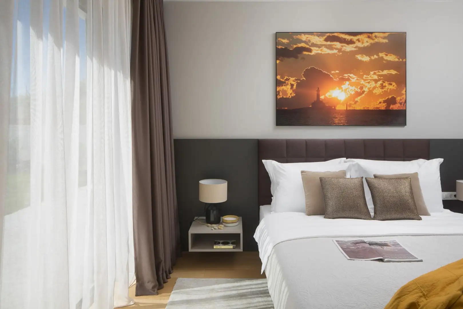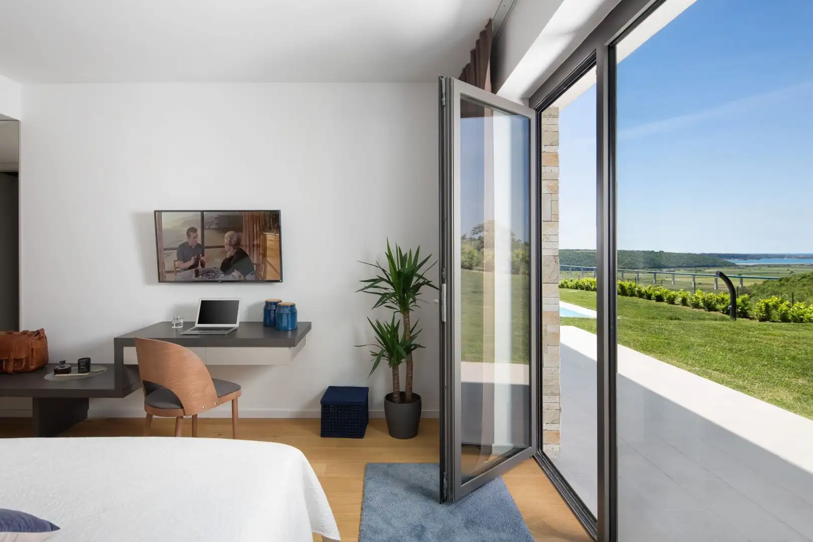 Новиград – это роскошная вилла с захватывающими панорамными видами, расположенная в 1,5 км от моря по прямой и примерно в 9 км от пляжа на автомобиле, в спокойной и природной обстановке.