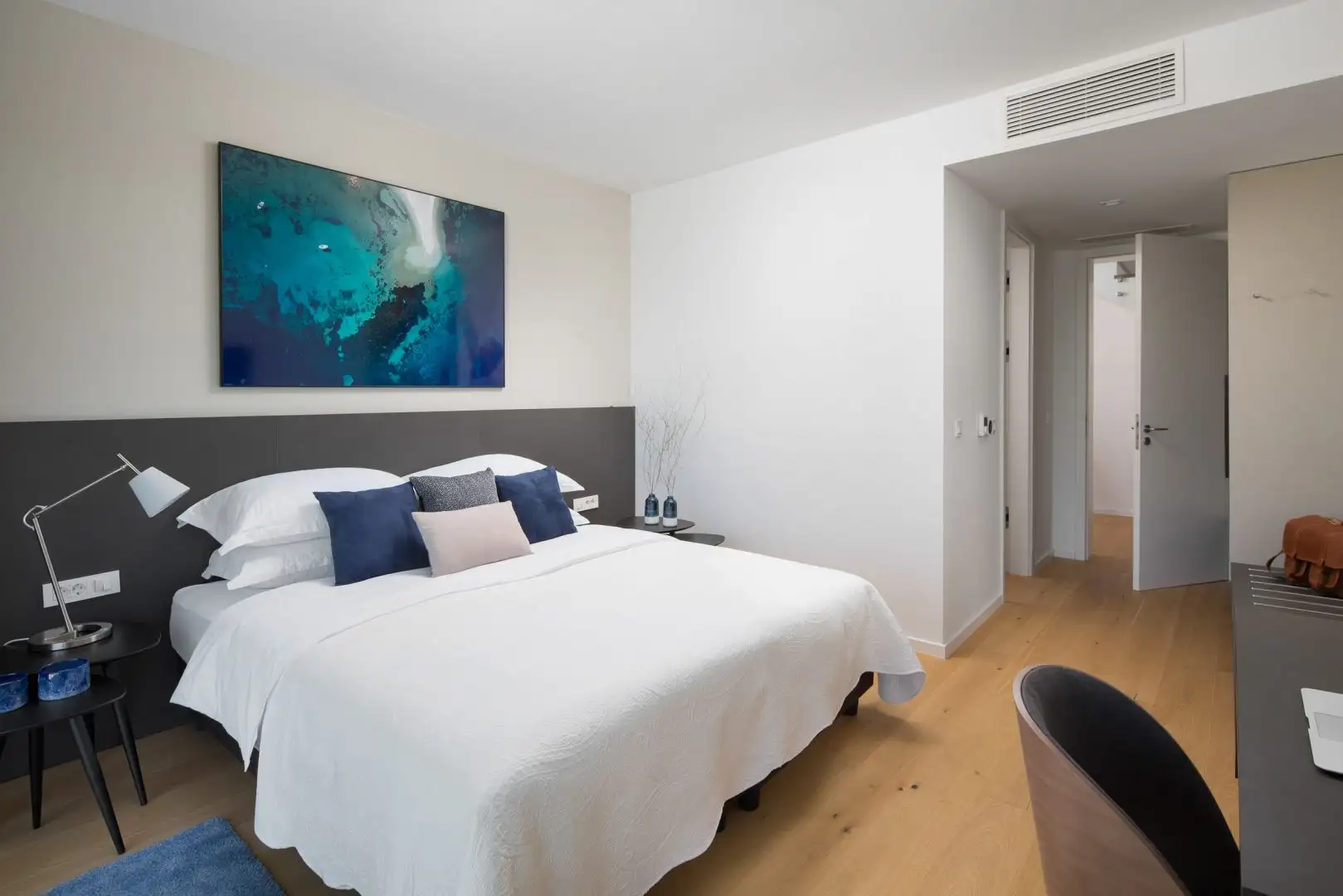 Отопление осуществляется с помощью теплых полов, работающих на тепловом насосе, а охлаждение обеспечивается через фанкойлы с индивидуальными термостатами в каждой комнате, что позволяет точно контролировать температуру в соответствии с личными предпочтениями. Для дополнительной безопасности и спокойствия вилла оборудована системой сигнализации и видеонаблюдения с удаленным доступом.