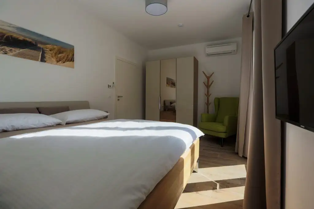 Расположение позволяет легко добраться пешком как до пляжа, так и до центра города Медулин – всего 10 минут пешком.