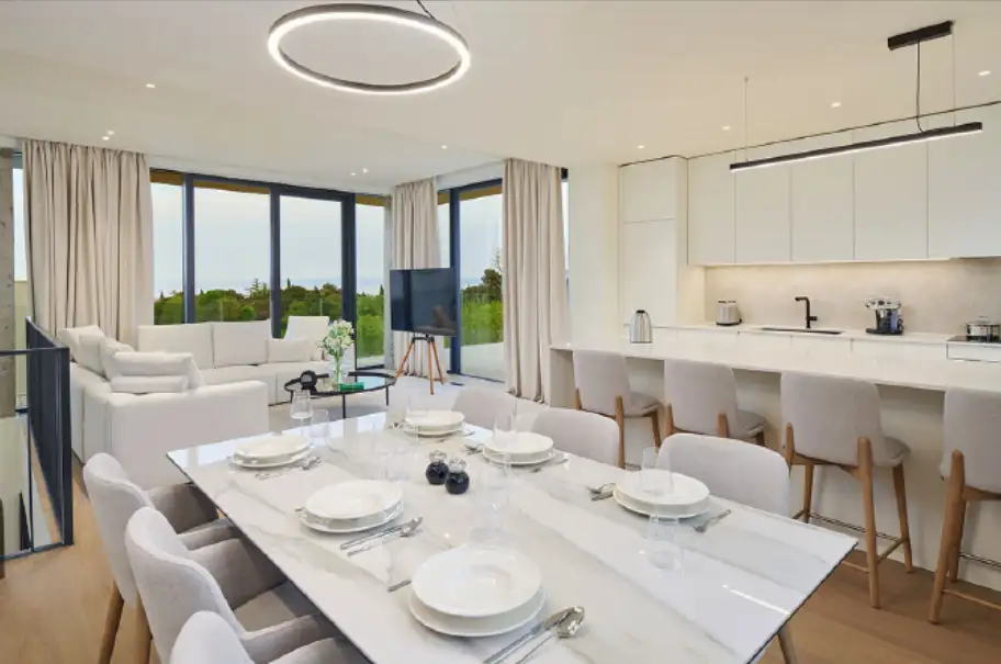 Новиград – это роскошная вилла с захватывающими панорамными видами, расположенная в 1,5 км от моря по прямой и примерно в...
