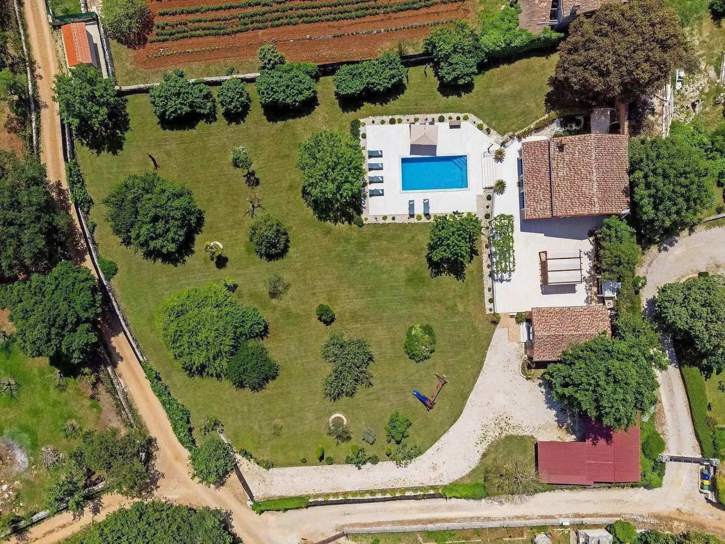 Расположенный в пышной зелени тихого пригородного района очаровательного Ровиня, этот оазис комфорта и покоя рядом с пляжем выставлен на продажу. Этот гармоничный дом состоит из главного дома, гостевого дома и бассейна. Он отличается не только своим выгодным микрорасположением, но и высококачественным строительством, обеспечивающим долгосрочное удовлетворение и качество жизни.