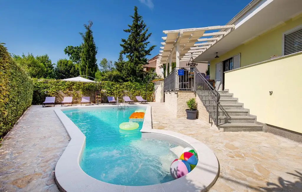 На острове Крк, в тихой деревне Добриње, продается прекрасная вилла с синими ставнями и бассейном, всего в 4...