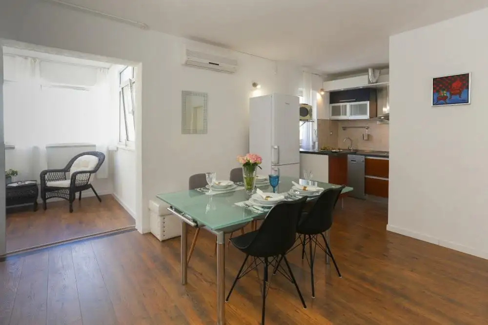 Он расположен в тихом и зеленом жилом районе рядом со всеми необходимыми удобствами для комфортного проживания. Средневековый город Трогир, охраняемый ЮНЕСКО как всемирное культурное наследие, находится всего в 2 км. Международный аэропорт Сплита находится в 5 км. Центр областного центра Сплита находится в 28 км от виллы.
