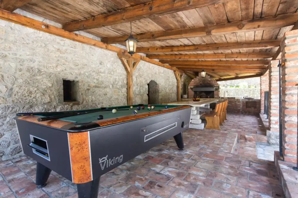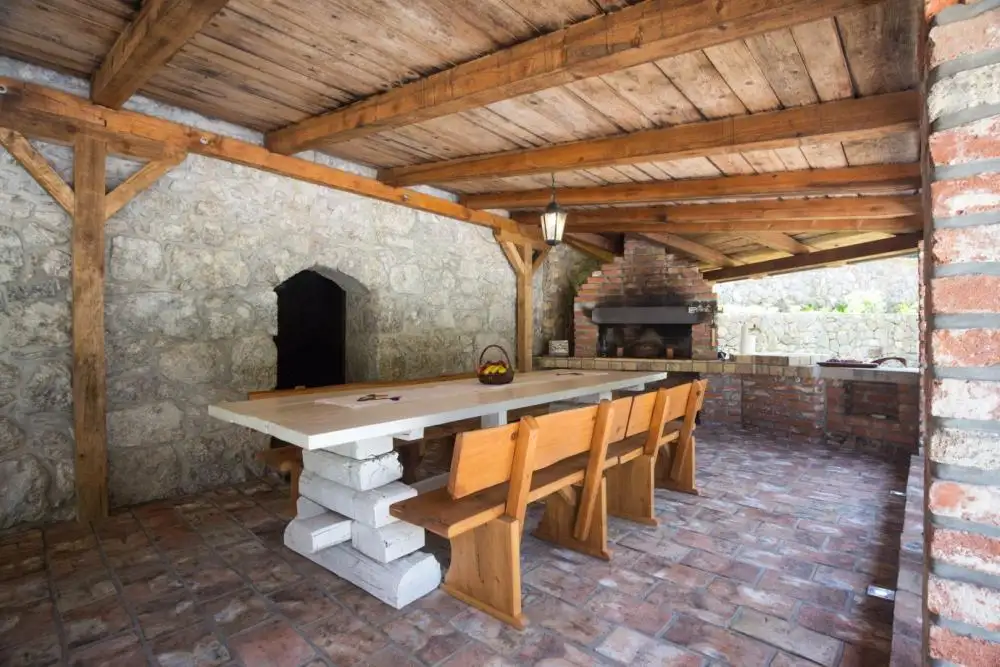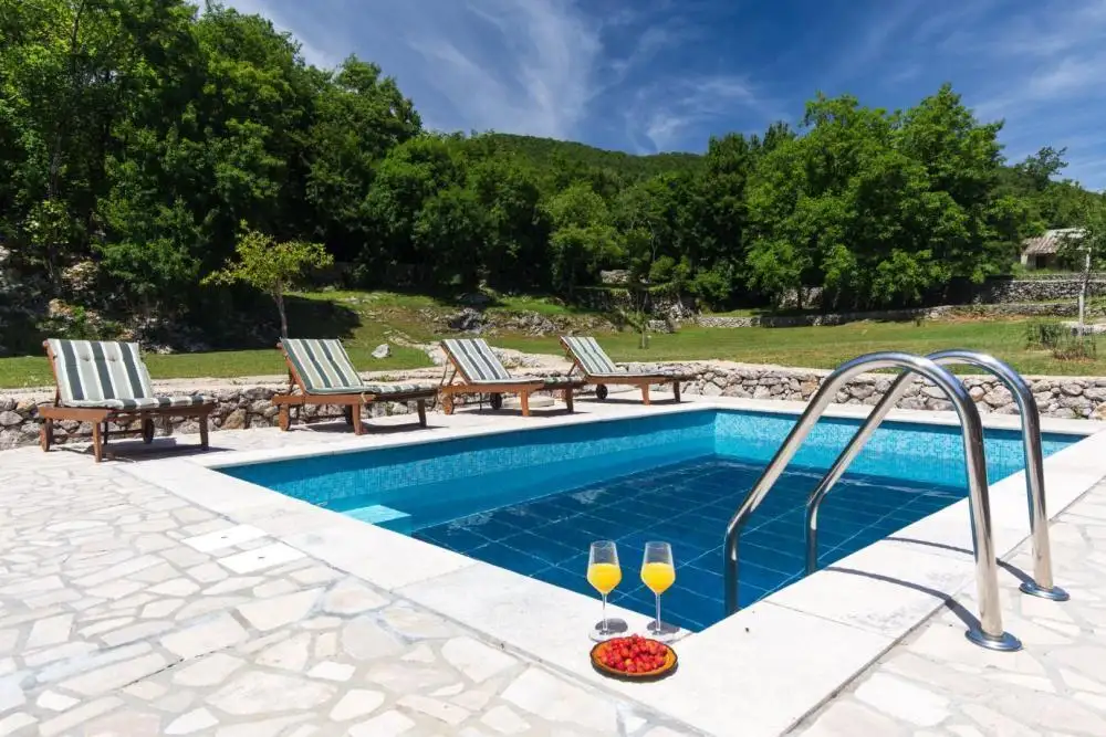 В каждой спальне установлен кондиционер, а также в доме установлены солнечные батареи, что обеспечивает приятное пребывание в этих объектах в течение всего года. Дома оформлены в традиционном стиле – преобладают натуральные материалы – дерево и камень, с функциональной мебелью, располагающей к приятному пребыванию и отдыху в домах. Просторный сад огорожен, красиво оформлен и ухожен, что обеспечивает идеальную конфиденциальность и покой. Он предлагает красивые зеленые зоны и расслабляющую атмосферу лесной идиллии. Также имеется бассейн площадью 23 м2 и обустроенная площадка для загара. Недвижимость идеально подходит для любителей природы и покоя, вдали от обычных туристических толп, но недалеко от прекрасных пляжей и чистого моря. В этом месте проложено множество лесных троп для пеших прогулок и изучения близлежащих деревень и природного парка Учка.