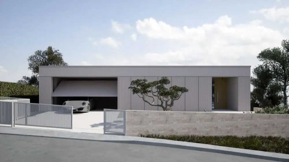 На верхнем этаже есть гараж (34м2), 3 спальни, одна из которых имеет собственную ванную комнату, машинное помещение, прачечная, коридор, крытая терраса.