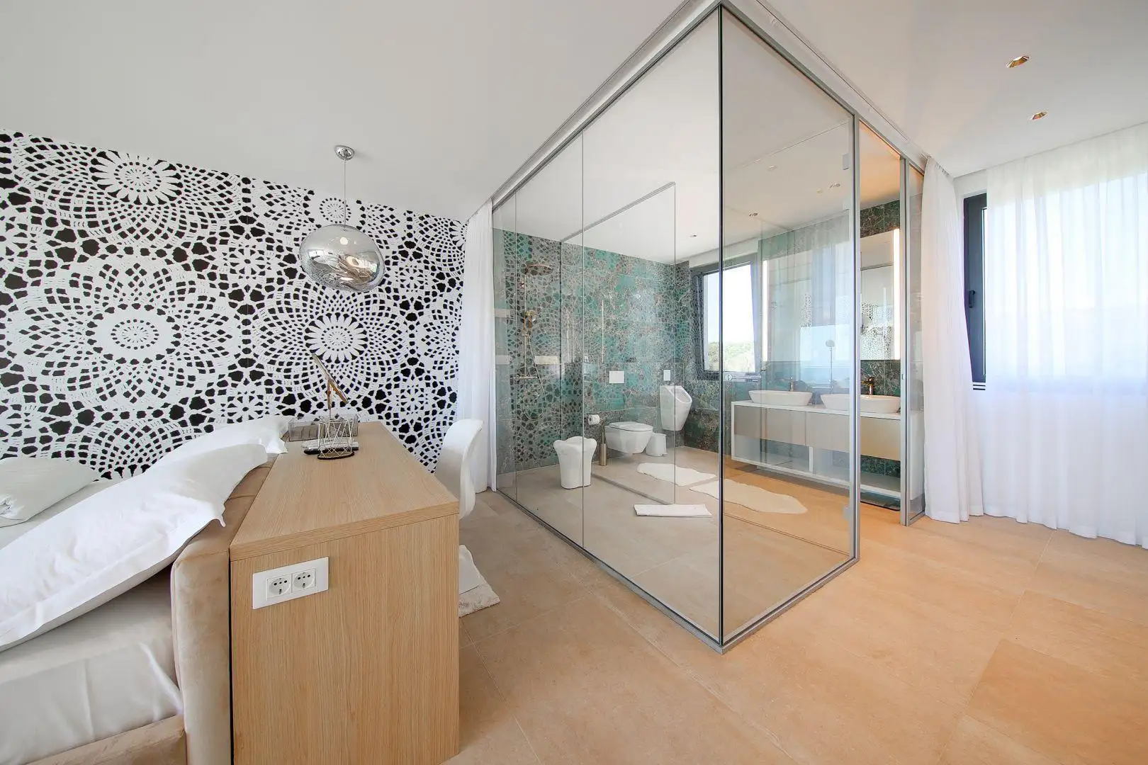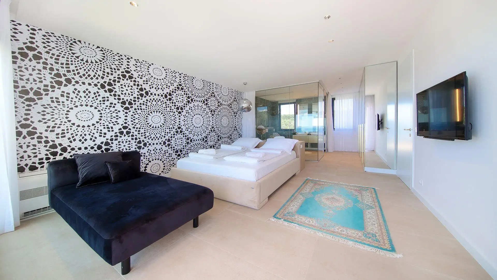 Из этой великолепной резиденции открывается захватывающий вид на море. Она воплощает в себе суть современной роскоши и изысканности.