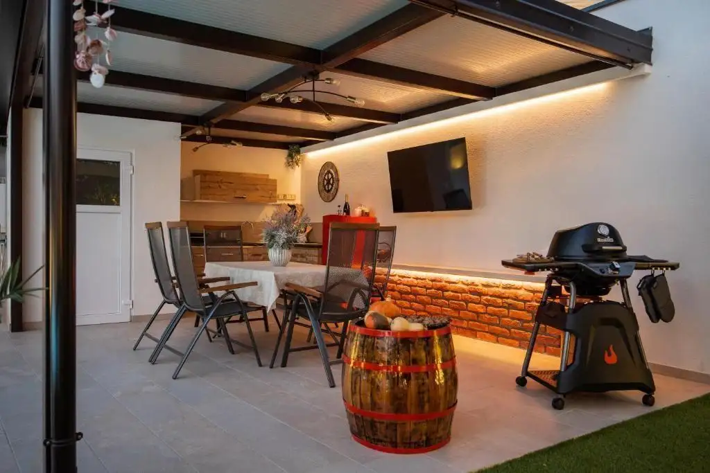 Для дополнительного комфорта владельцы создали удобный доступ из кухни на просторную крытую террасу на открытом воздухе. Рядом с террасой вы найдете барбекю на открытом воздухе, идеально подходящее для развлечения друзей и семьи во время приготовления любимых блюд. Частная зона на первом этаже включает две комфортабельные спальни и две просторные ванные комнаты.
