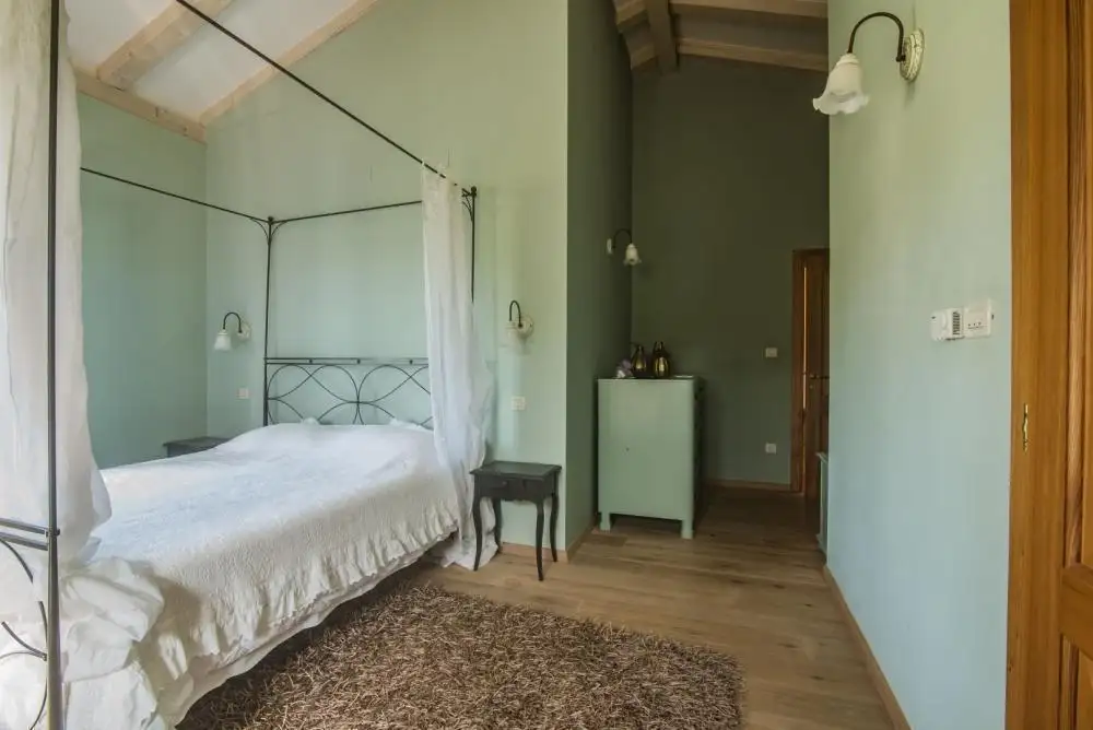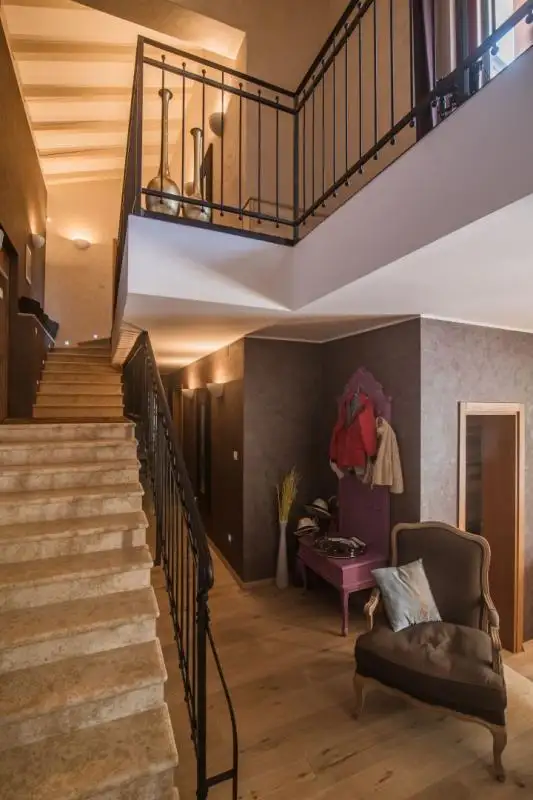В конце галереи находится главная спальня с собственной ванной комнатой, просторной гардеробной и выходом на террасу площадью ок. 50 м2, с внешней лестницей, обеспечивающей прямой выход в сад и к бассейну. Также были установлены солнечные панели. Бассейн с подогревом площадью 43 м2 с соленой водой имеет специальную крышку, которая нагревает бассейн с помощью солнечных батарей. Он идеально подходит для использования в течение всего года. Здесь также есть гидромассаж и красивый водопад, который обязательно успокоит каждую часть вашего тела.