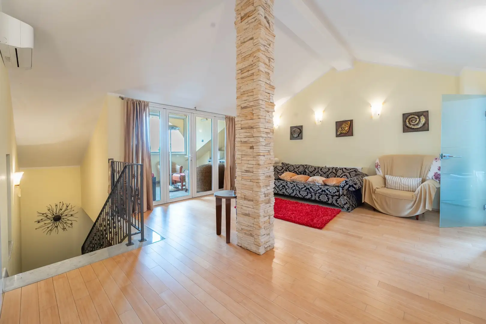 Обе гостиные на первом и втором этажах ориентированы на юг, что обеспечивает солнечное освещение в течение всего дня и непрерывный вид на Адриатическое море. Просторные террасы на обоих уровнях улучшают опыт жизни на свежем воздухе.