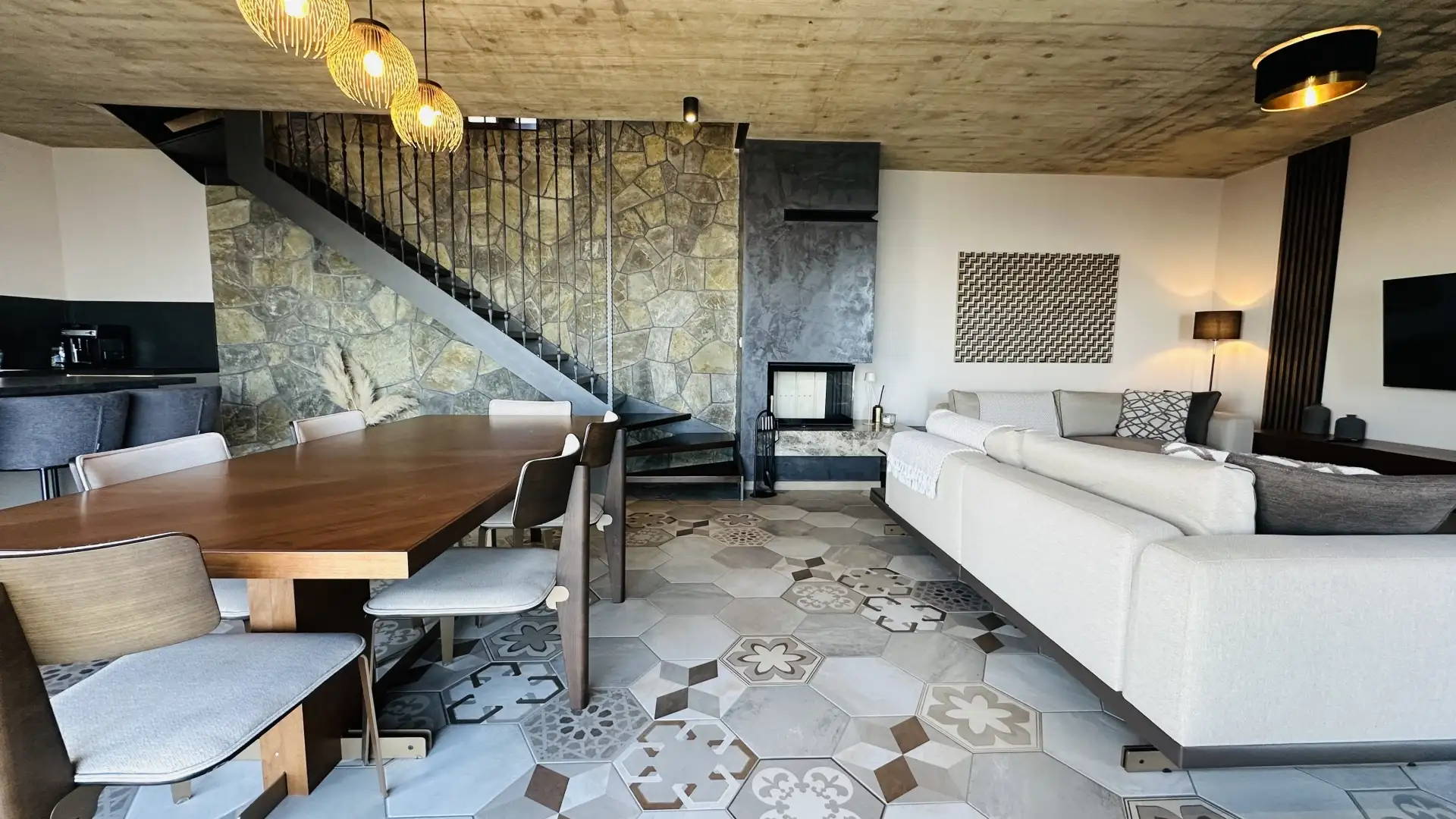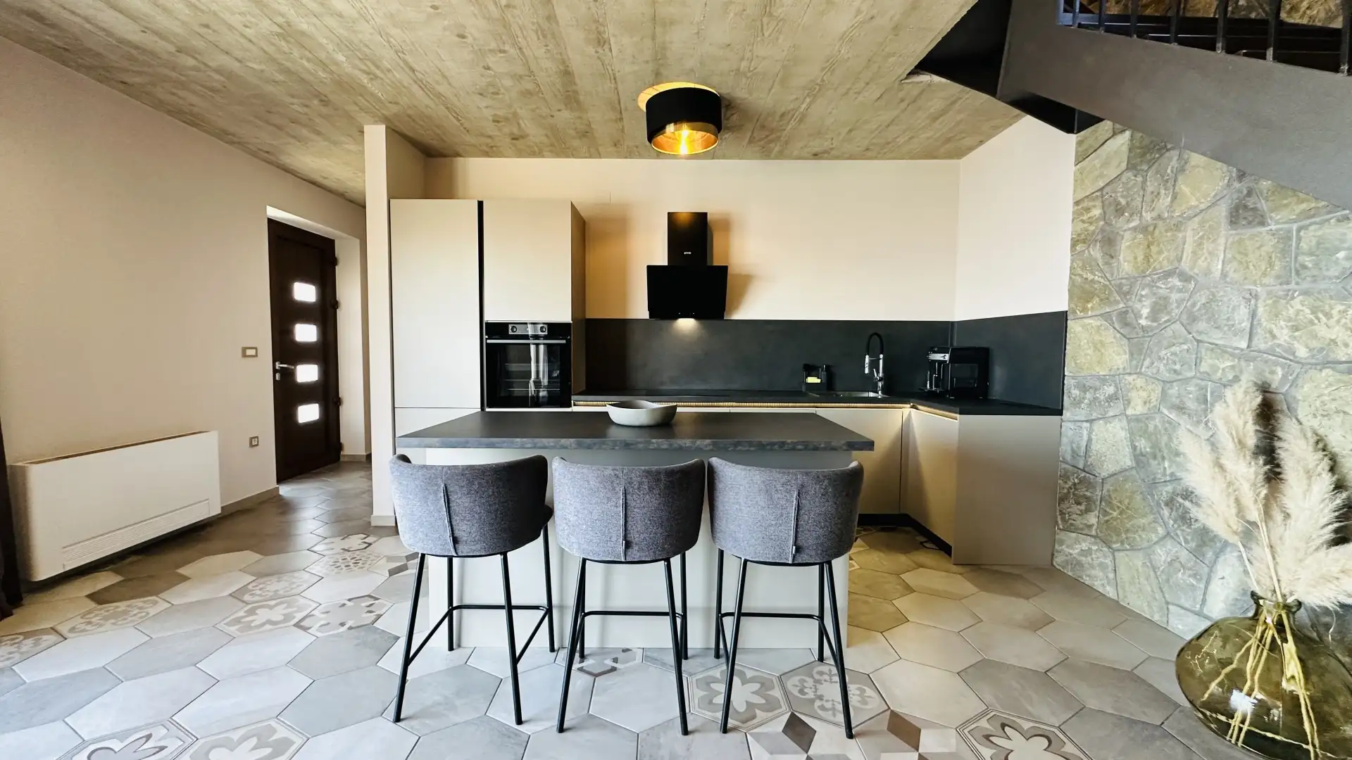 Вилла успешно сочетает в себе rustic очарование традиционного каменного строительства с современными дизайнерскими решениями и высококачественными материалами, что приводит к созданию комфортного, функционального и визуально привлекательного жилого пространства.