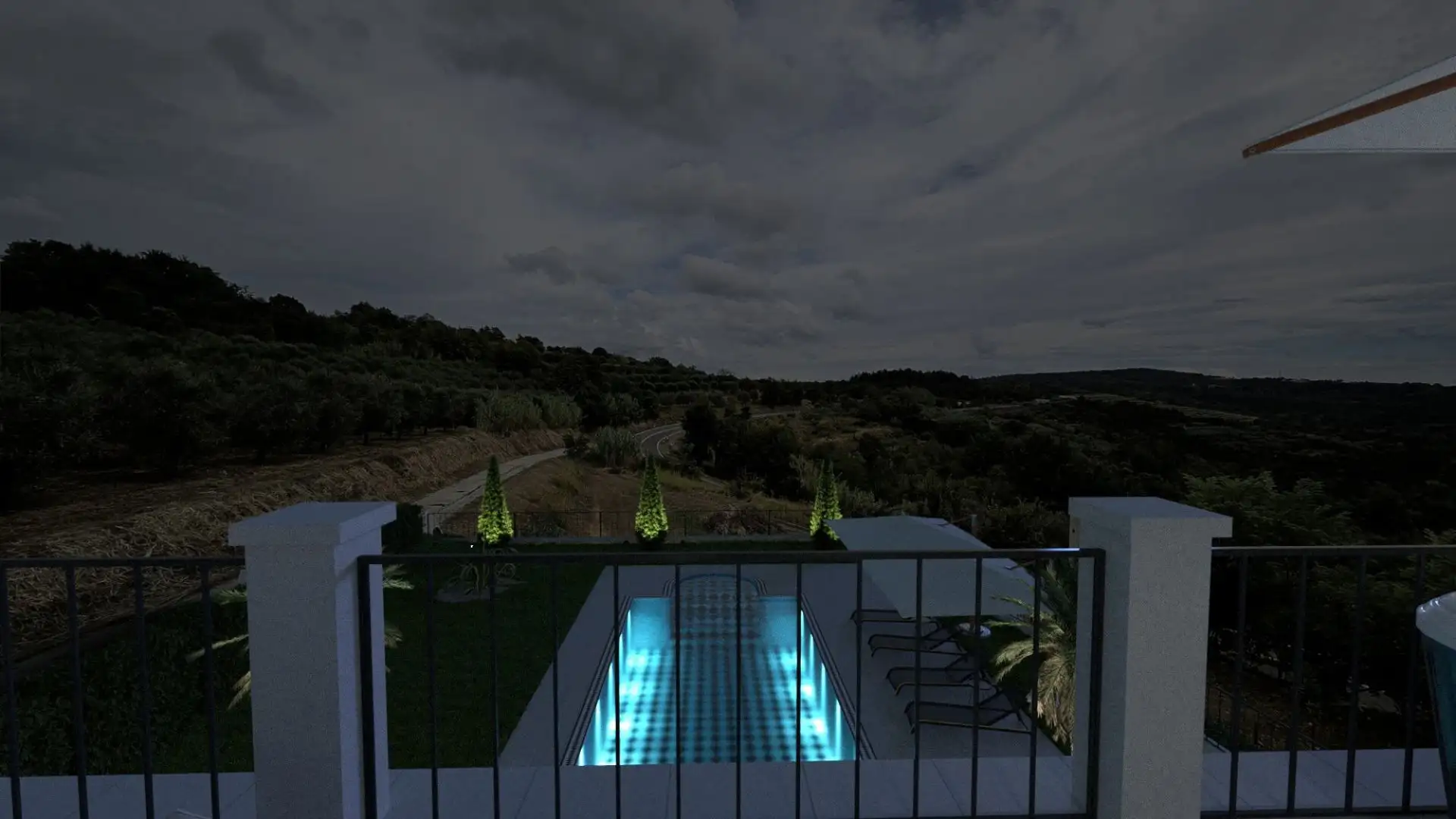 Вилла общей площадью 384 м2 (280 м2 жилой площади и 104 м2 террасы), подвал, первый и второй этажи, красивый вид из каждой комнаты, 3 спальни и уникальные удобства - казино, кинотеатр, винный погреб, спа, две кухни (скрытая кухня для обслуживающего персонала), скрытая комната для паники, вращающаяся парковочная платформа и практическая система для хранения грязной одежды.