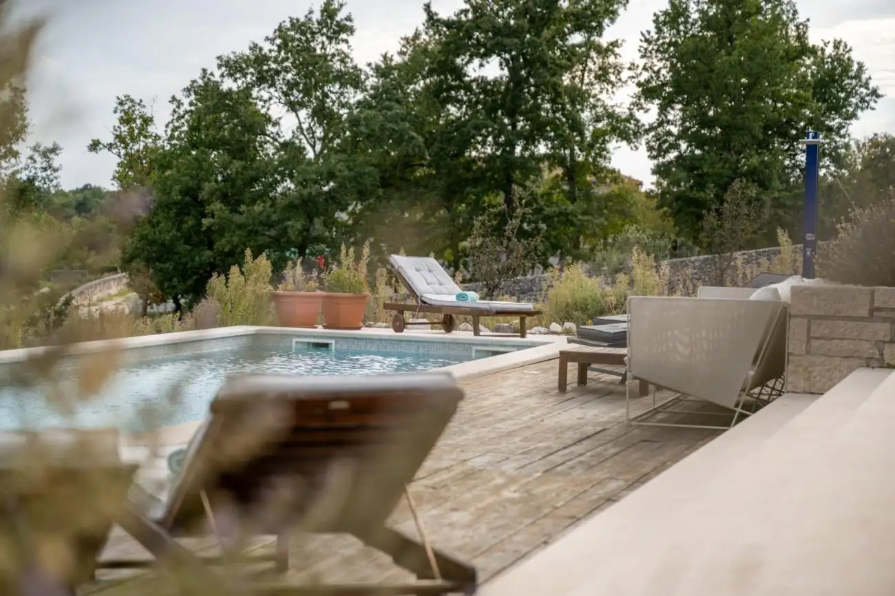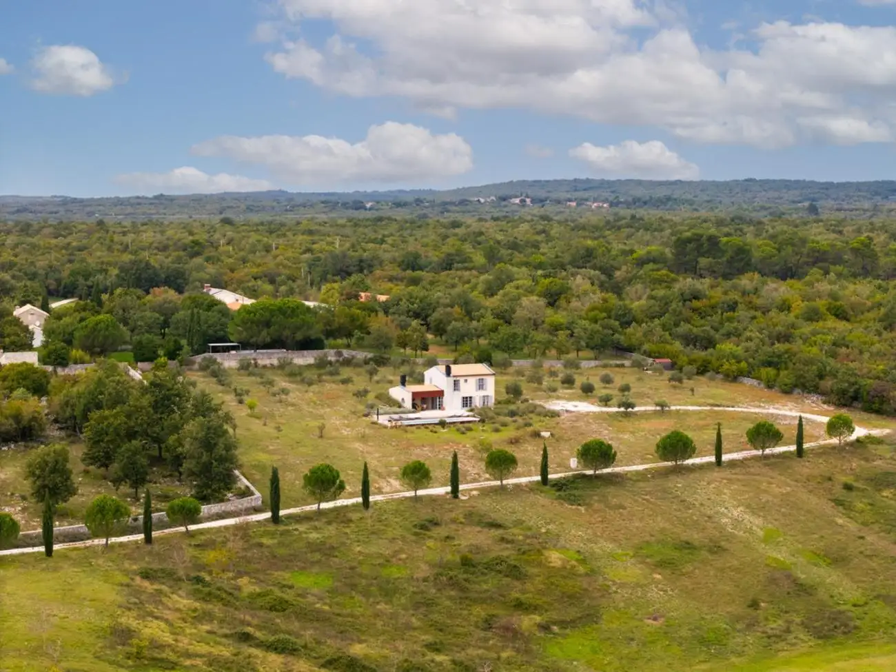 Недвижимость включает в себя примерно 8,500 м² в пределах строительной зоны и в настоящее время включает жилой дом с общей площадью 171 м² и открытым бассейном площадью 39 м². Существует потенциал для строительства двух дополнительных домов с бассейнами, что делает это привлекательным вложением в Истрии для туризма, дохода от аренды и семейной жизни рядом с Ровинем и Адриатическим морем.