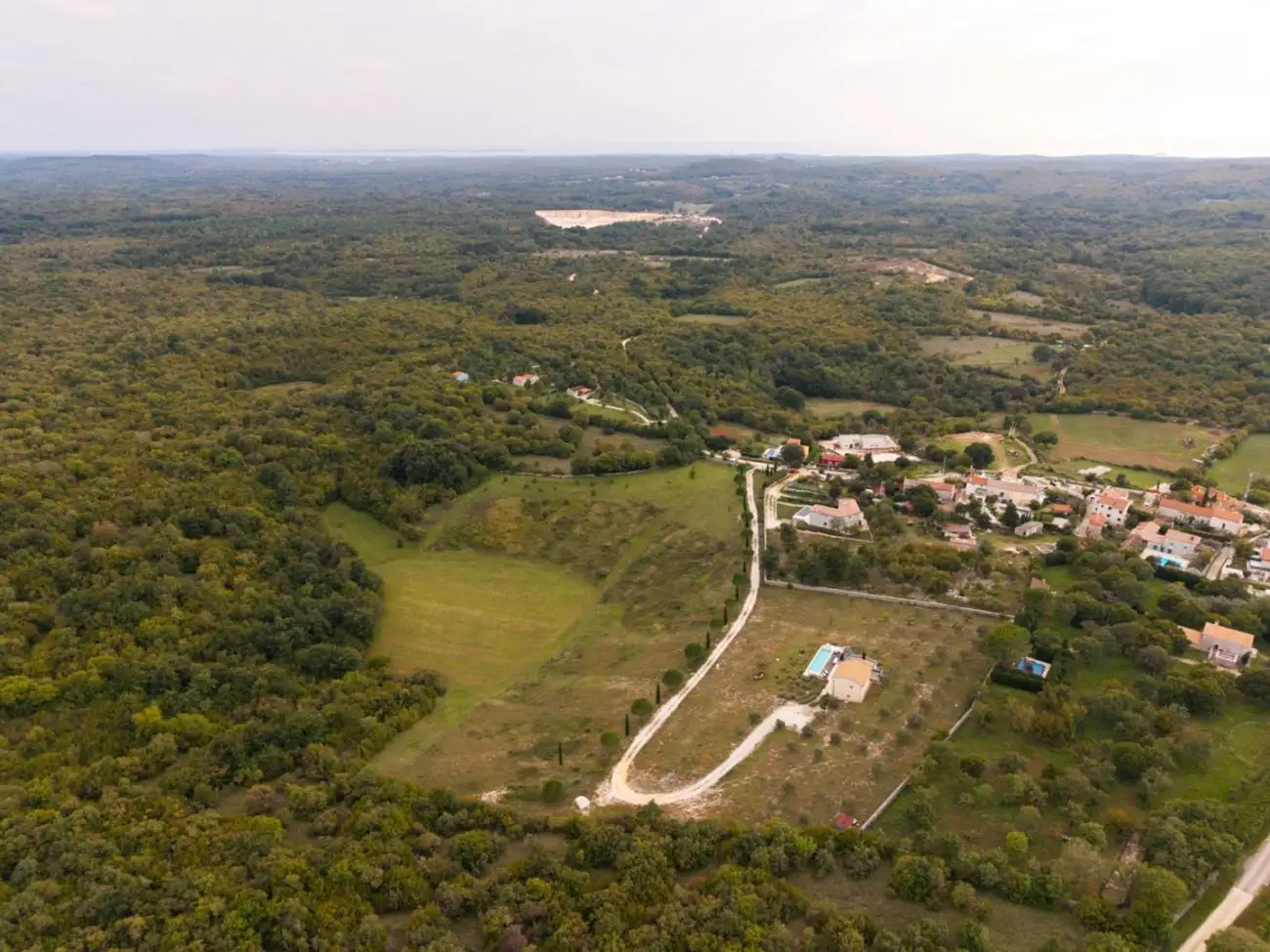 Этот большой участок с бассейном недалеко от Ровиня, окруженный природой, оливковыми деревьями и идеальной землей для виноградников, представляет собой исключительную возможность для инвестиций, агротуризма, частного развития или аренды роскошного отдыха в Истрии.