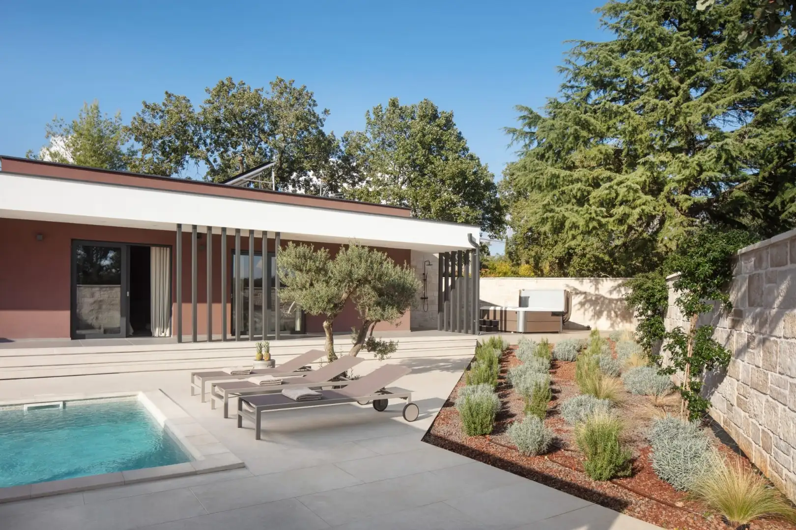 Эта вилла — это не просто дом, а тщательно спроектированный уголок, где современная архитектура, комфорт и природа гармонично сочетаются, всего в нескольких минутах от культурной и прибрежной красоты Ровина.