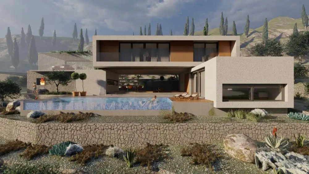 Вариант 2. На основании проекта и сметы была создана полная среда в бетоне со всеми несущими стенами, - забетонированы строительная часть бассейна и цистерна с водой, - дом построен в системе Rohbau / все бетонные и железобетонные работы согласно сметной документации - наружные столярные работы, арматура, гидро- и теплоизоляция, также согласно сметной документации, которая является неотъемлемой частью проекта, заказчику остаются кустарно-отделочные работы. В цену входят п.1 и 2. Срок сдачи 15.04.2024. Цена 890 000 евро.