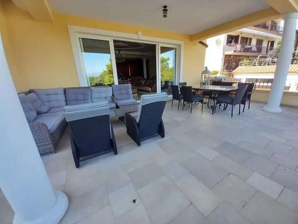 На продажу выставлена красивая отдельная вилла в средиземноморском стиле с пятью жилыми единицами, естественно разделенными на четыре этажа: подвал, первый этаж и второй этаж. В подвале расположены три гаража на четыре парковочных места и квартира-студия. Кроме того, на цокольном этаже расположена комфортабельная однокомнатная квартира, состоящая из спальни, гостиной с кухней, санузла и террасы с камином/барбекю.