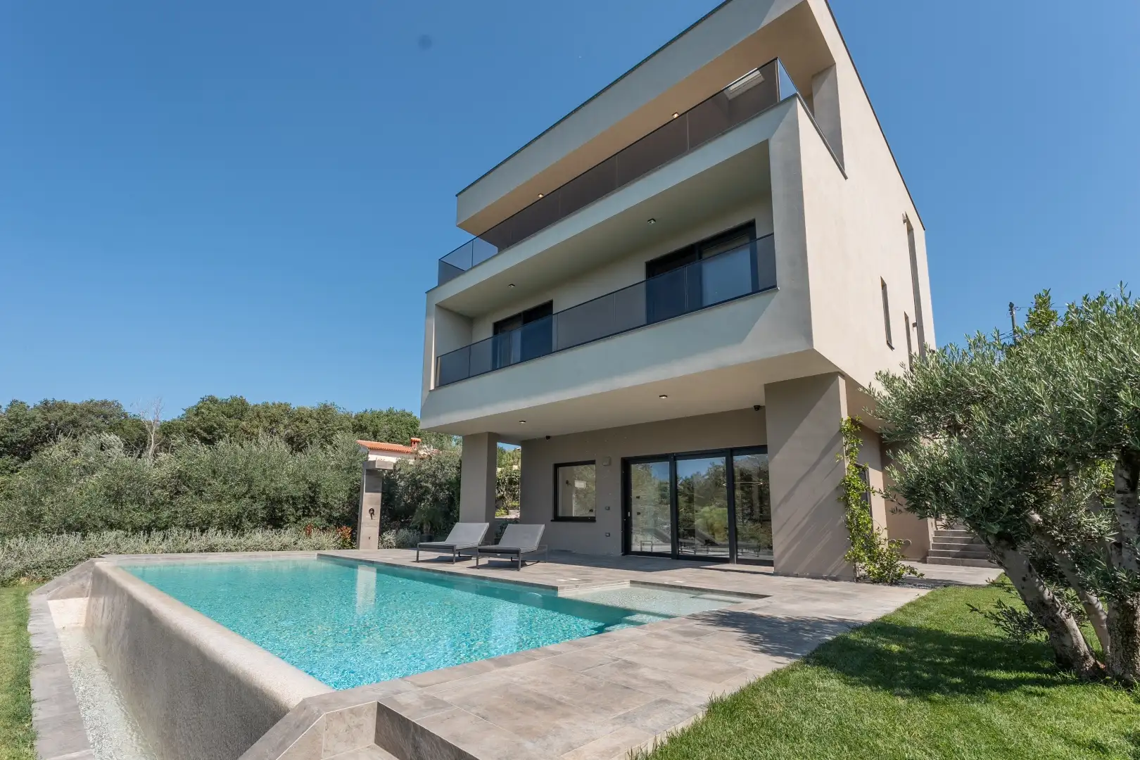Новиград – это роскошная вилла с захватывающими панорамными видами, расположенная в 1,5 км от моря по прямой и примерно в...