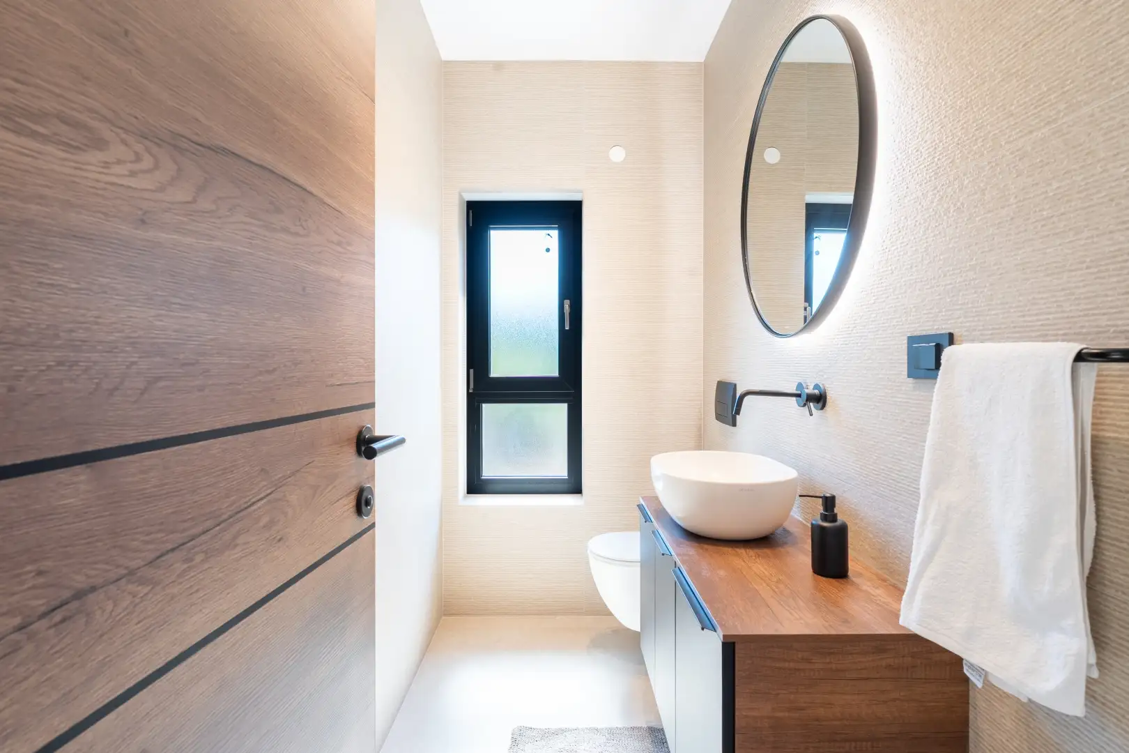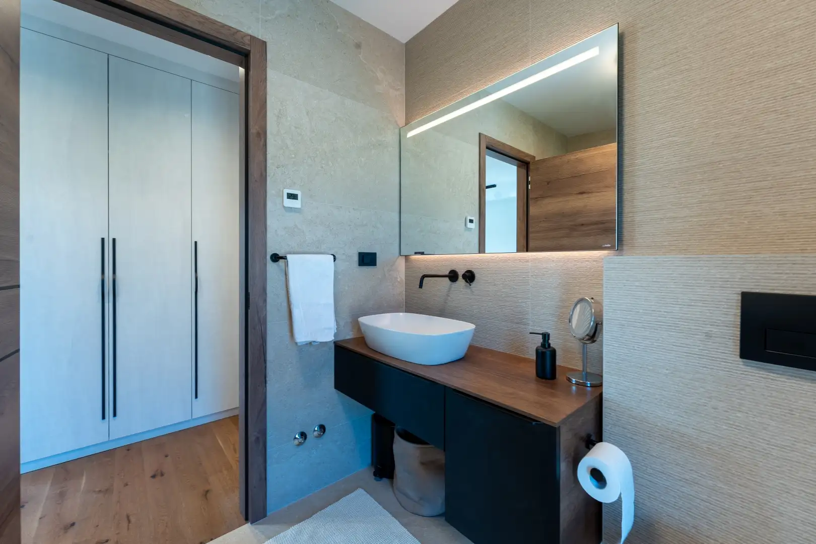 Также на нижнем уровне находится универсальное пространство площадью 50 м², которое можно адаптировать под ваш образ жизни — как зона для отдыха, винный погреб, тренажерный зал, развлекательная комната или дополнительная зона для гостей.
