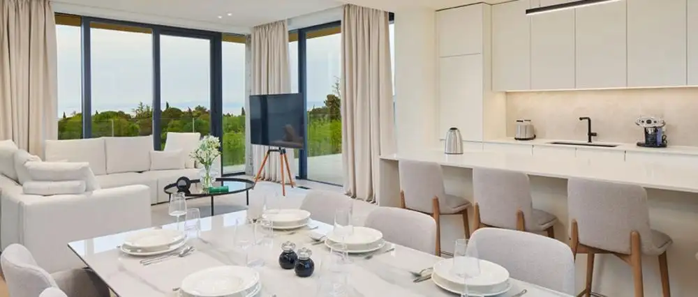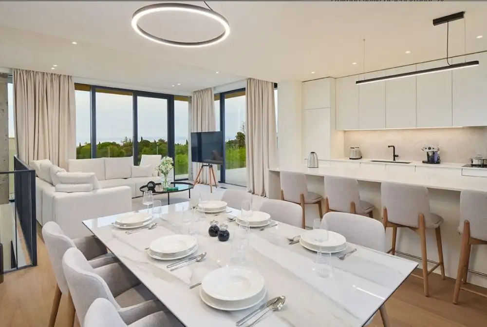 Виллы имеют общую площадь и могут разместить до 8 человек, предлагая 5 спален, 5 ванных комнат, гараж на 2 машины, крытый частный бесконечный бассейн.