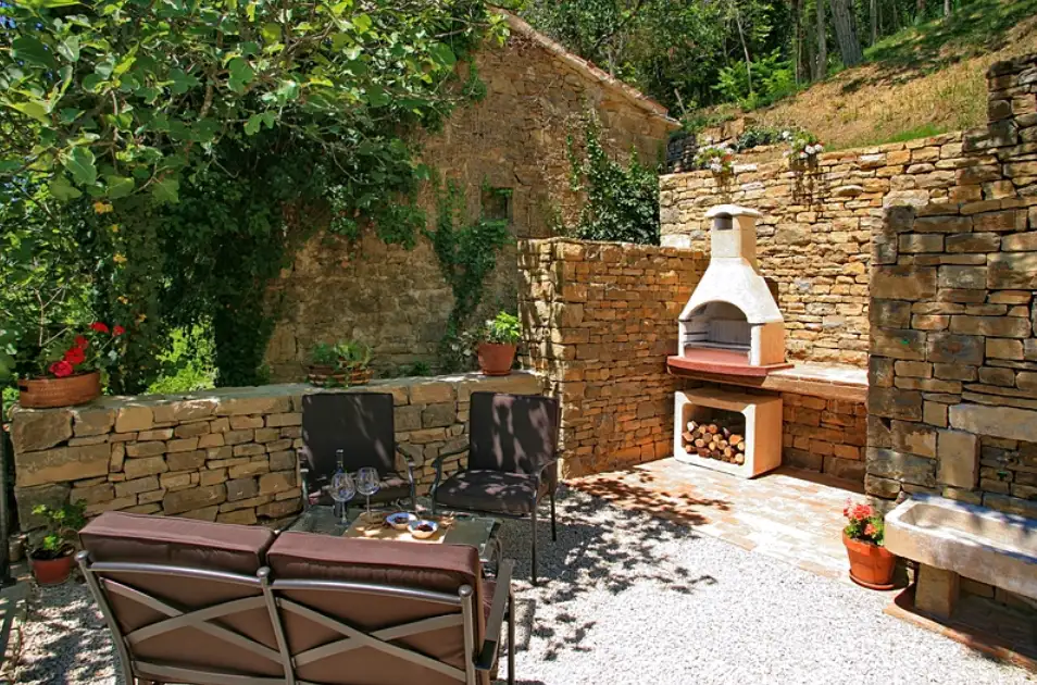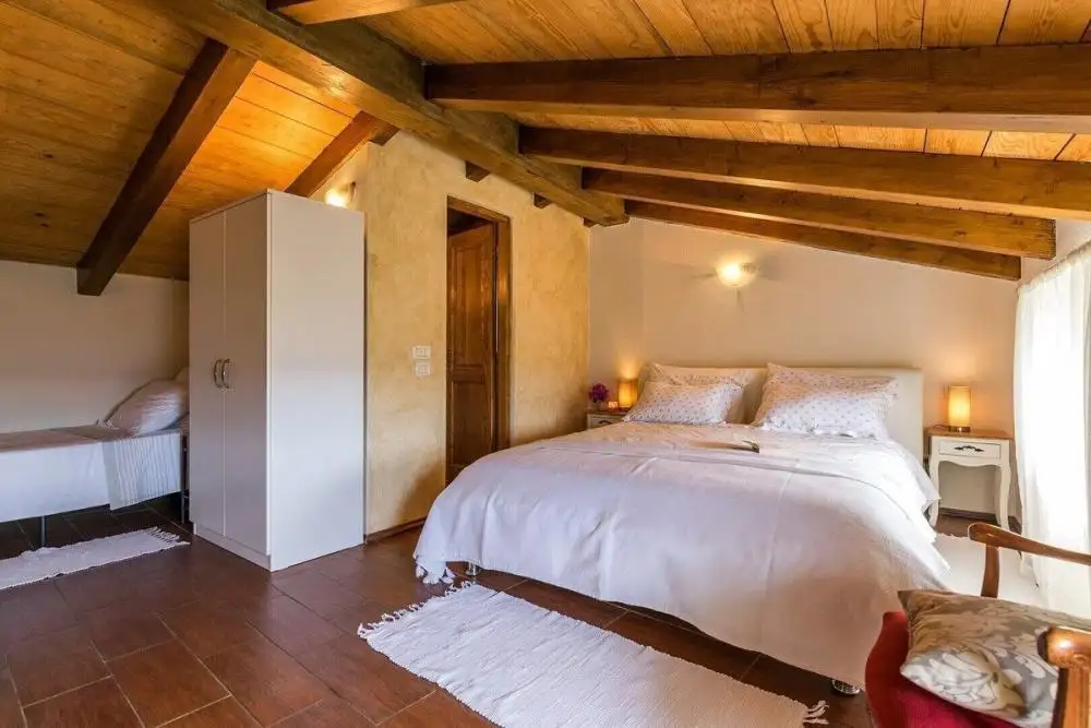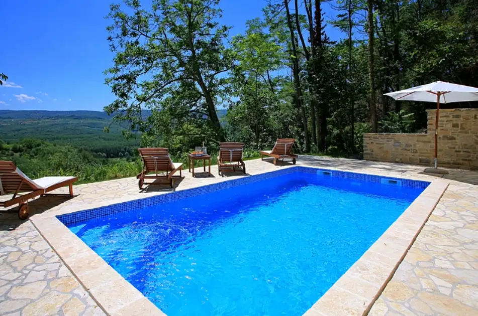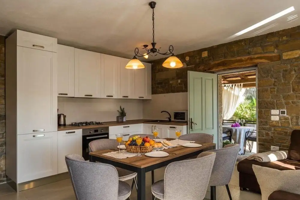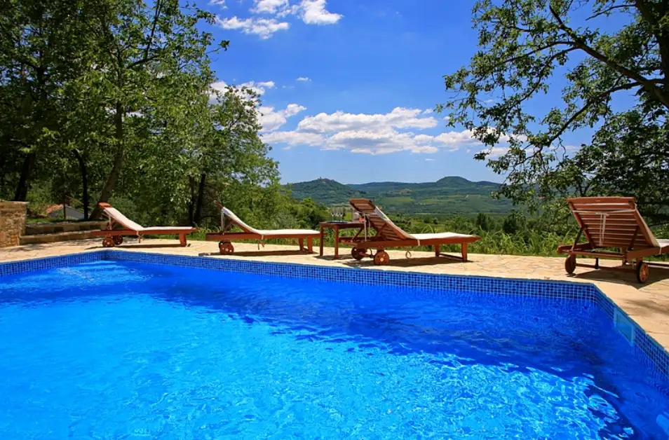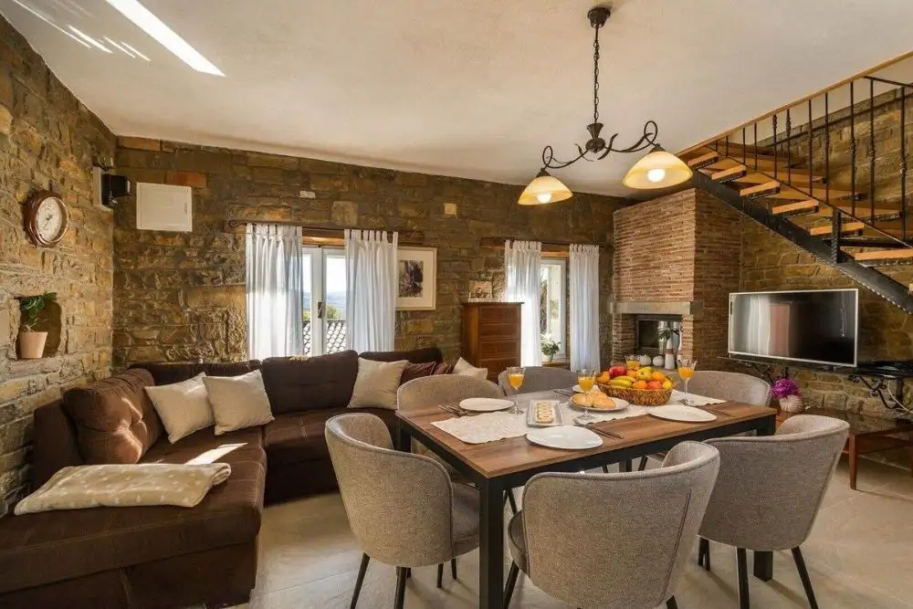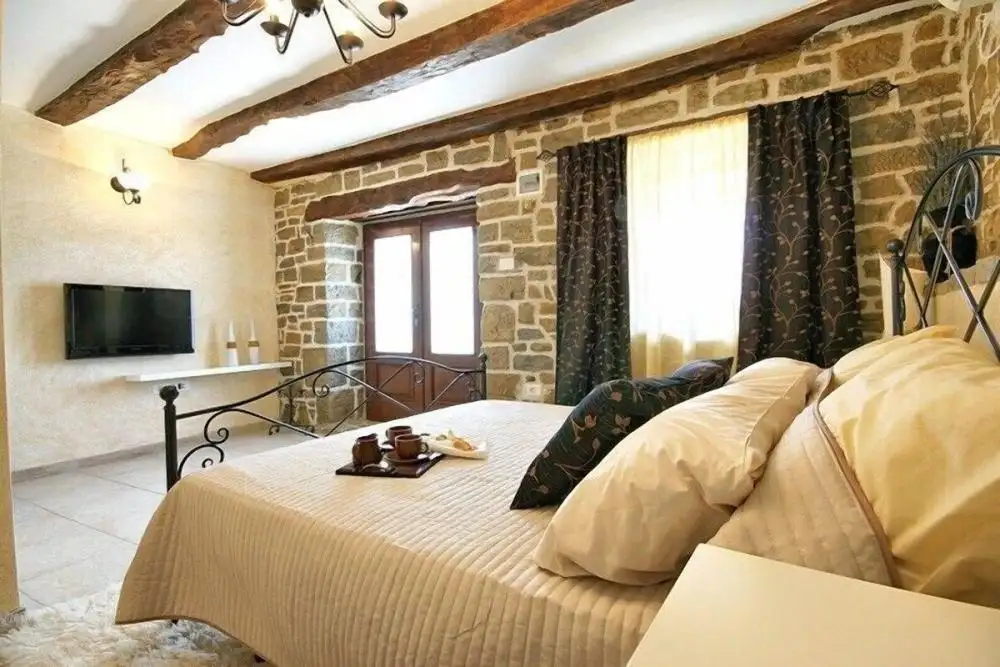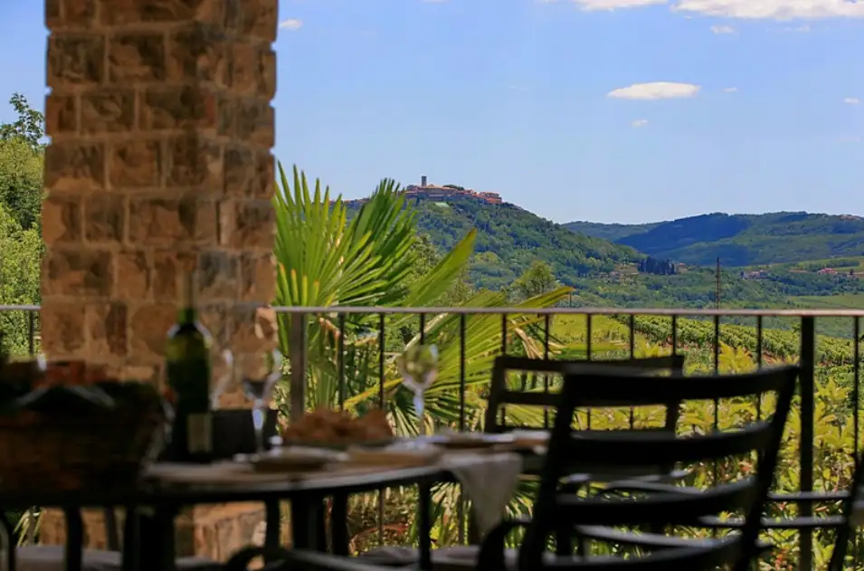 Два каменных дома с бассейном и видом на Мотовун в Опртале!
