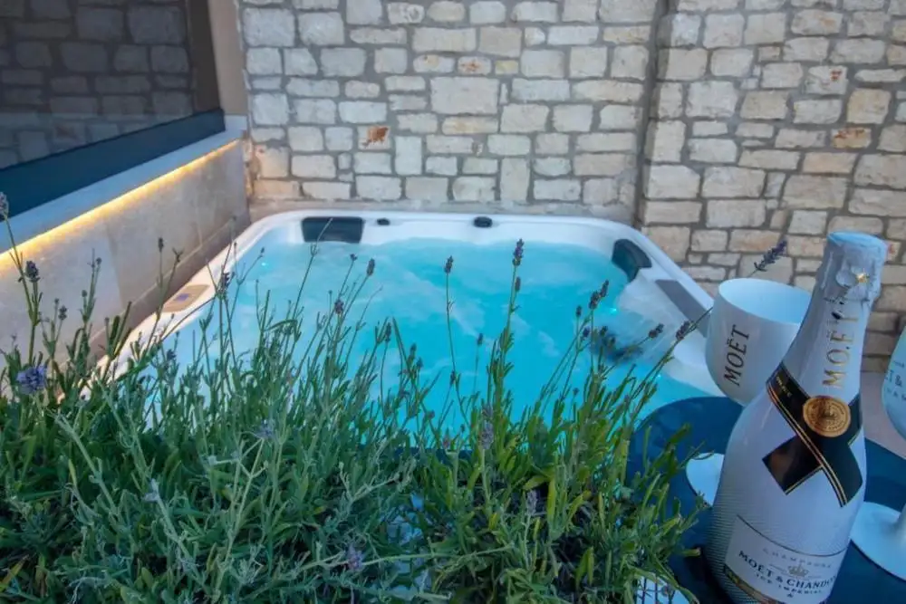 Снаружи очарование продолжается садовым освещением, каменным забором, пейзажным бассейном с мозаичной поверхностью, системой электролиза морской воды с подготовкой к подогреву бассейна и джакузи для полного расслабления. Дополнительные удобства включают ландшафтный сад, подготовку к летней кухне, электрические ворота и два парковочных места.