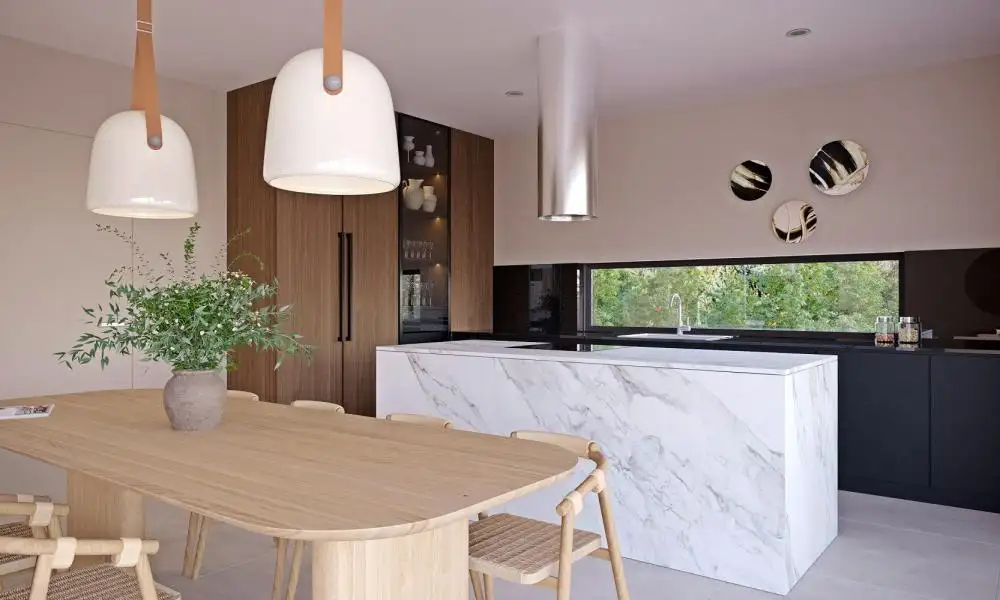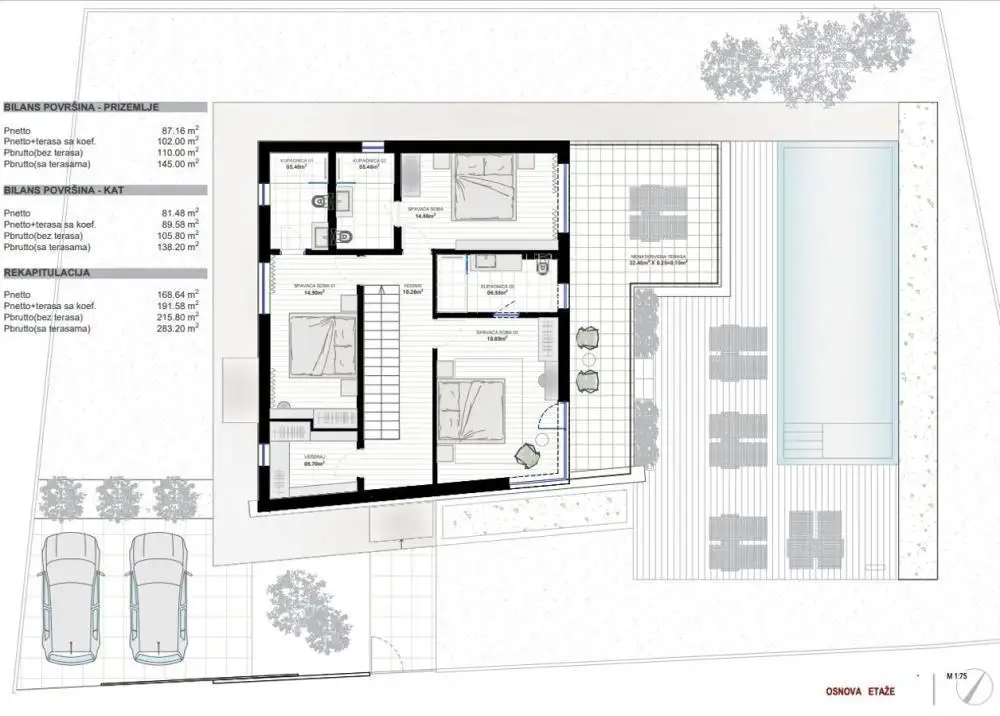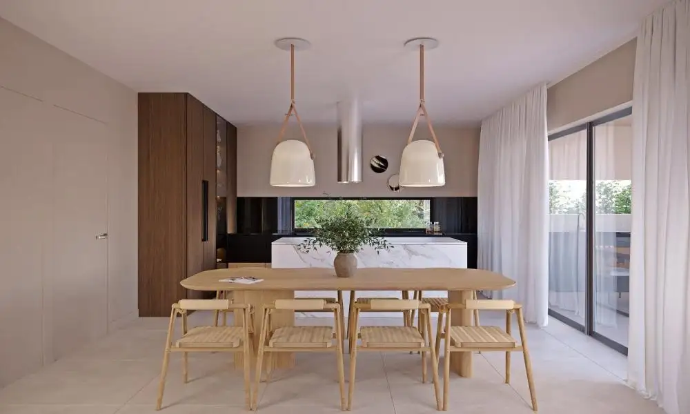 Современный интерьер, в котором мягкие и светлые землистые цвета сочетаются с элегантным черным, разделен на два этажа общей чистой площадью 191,58 м² и излучает элегантность и простоту и обеспечивает высокий уровень комфорта.