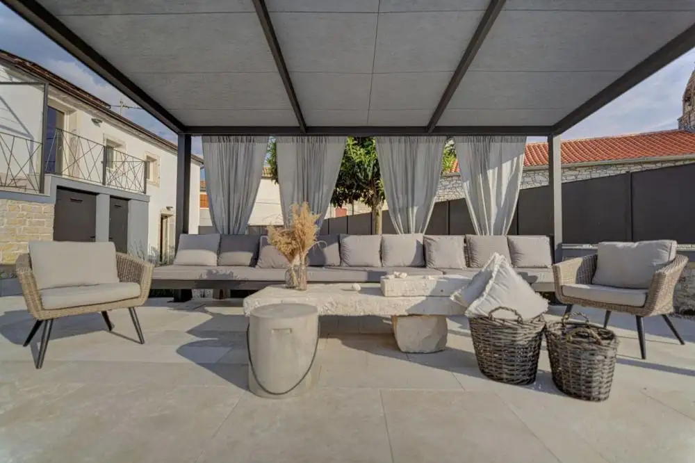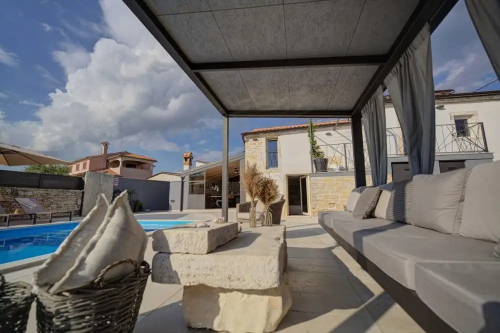 В небольшом живописном месте недалеко от Канфанара продается исключительная, полностью отреставрированная старинная вилла площадью 136 кв.м. с бассейном, на территории 350 кв.м.. Эта красивая коренная вилла покоряет с первого взгляда сочетанием традиций – камня и дерева и современного дизайна с прямыми и чистыми линиями.