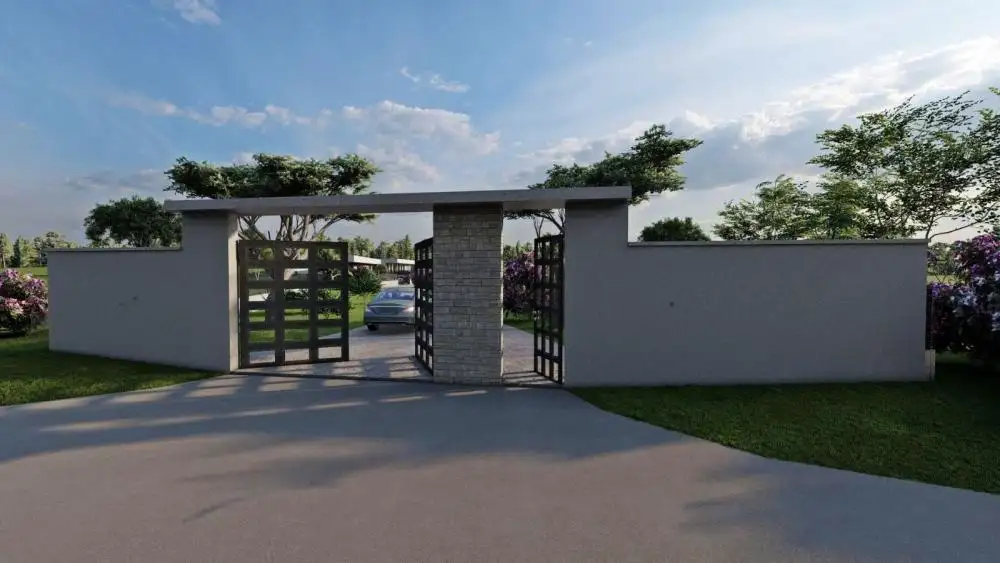 Рядом с домом есть бассейн площадью 27 м² с мощеной площадкой для принятия солнечных ванн и два парковочных места в огороженном и благоустроенном саду. В собственности также есть одна третья часть совместной собственности на детскую площадку и дополнительную парковку для гостей рядом с домом.
