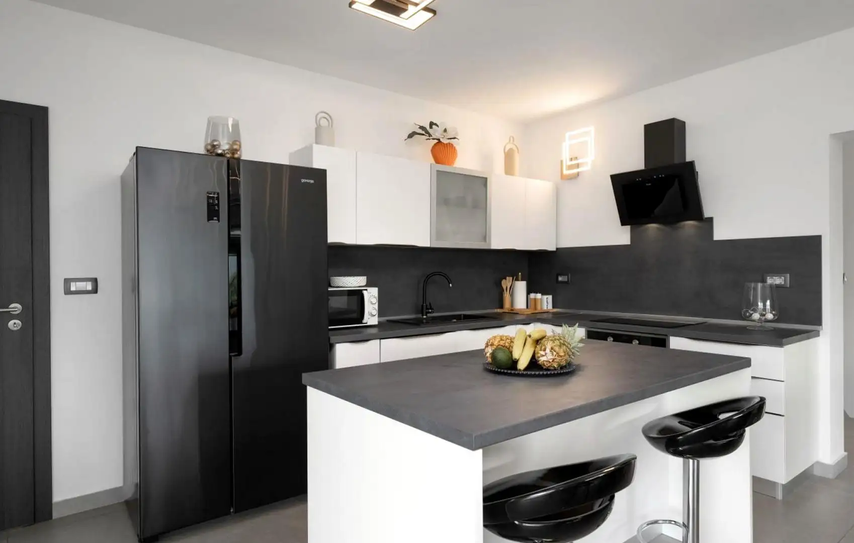 Вилла имеет вне времени дизайн, который гармонично сочетается с деревней и окружающим ландшафтом как по форме, так и по цвету. Она задумана как единое жилое пространство, распределенное на два стильно оформленных и хорошо оборудованных этажа.