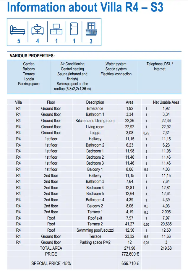 Вилла R4 раскинулась на территории площадью 219,68 квадратных метров, ее просторное внутреннее пространство разделено на три уровня и увенчано террасой на крыше, где мир растворяется в мгновениях полной релаксации.