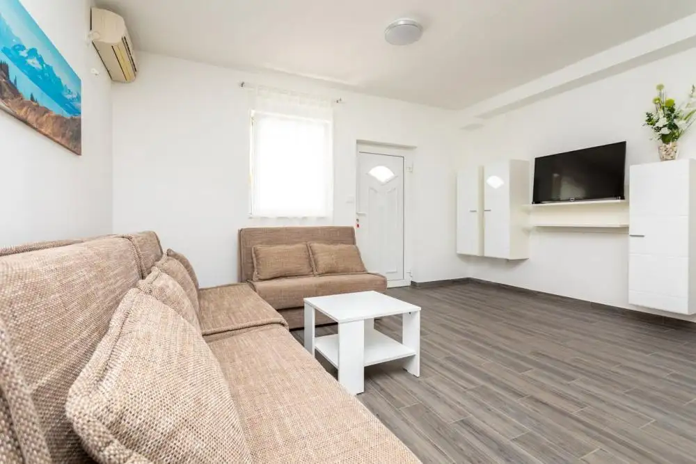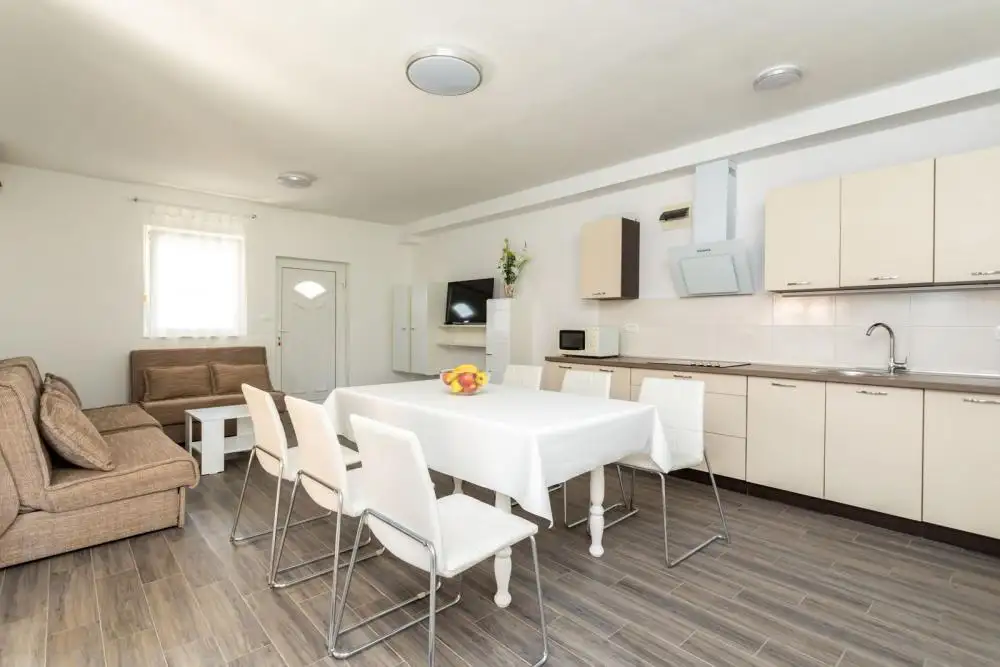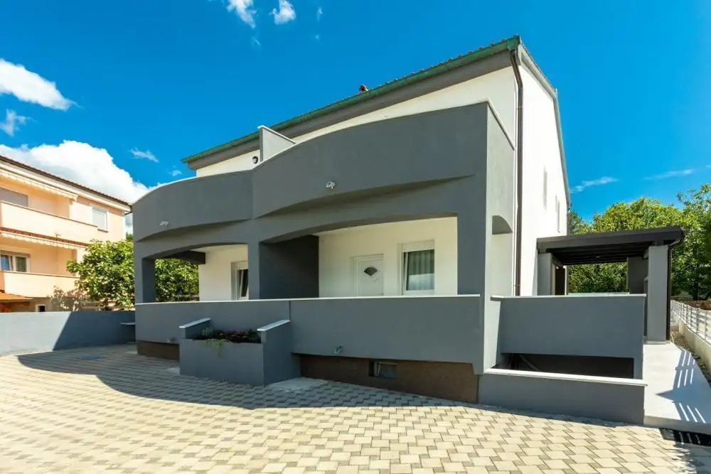 Смежная вилла с бассейном на продажу всего в 100 метрах от моря в заливе Солине на острове Крк.