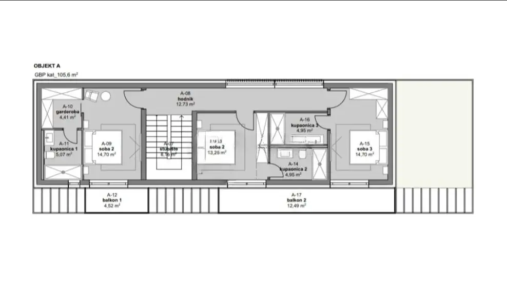 Вилла будет состоять из гостиной, кухни, кладовой, трех спален, трех ванных комнат и туалета. Эта вилла благодаря своей прочной бетонно-кирпичной конструкции обеспечивает ощущение безопасности и стабильности. Окна ПВХ выполнены в антрацитовом цвете.