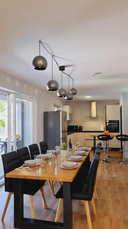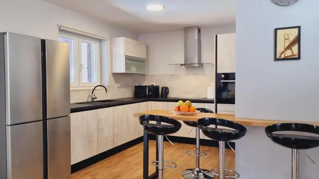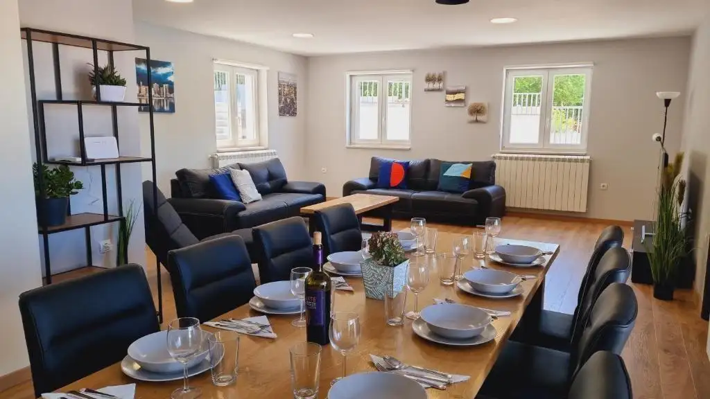 Наверху вас ждут еще две комнаты отдыха, каждая со своей ванной, предлагающей утешение после дня исследований. Полы повсюду из теплого ламината, за исключением ванных комнат, где прохладная плитка приветствует ноги. Центральное отопление на пеллетах обогревает всю виллу, а кондиционер смягчает летнюю жару не только в спальнях, но и в большом зале и комнате веселья.