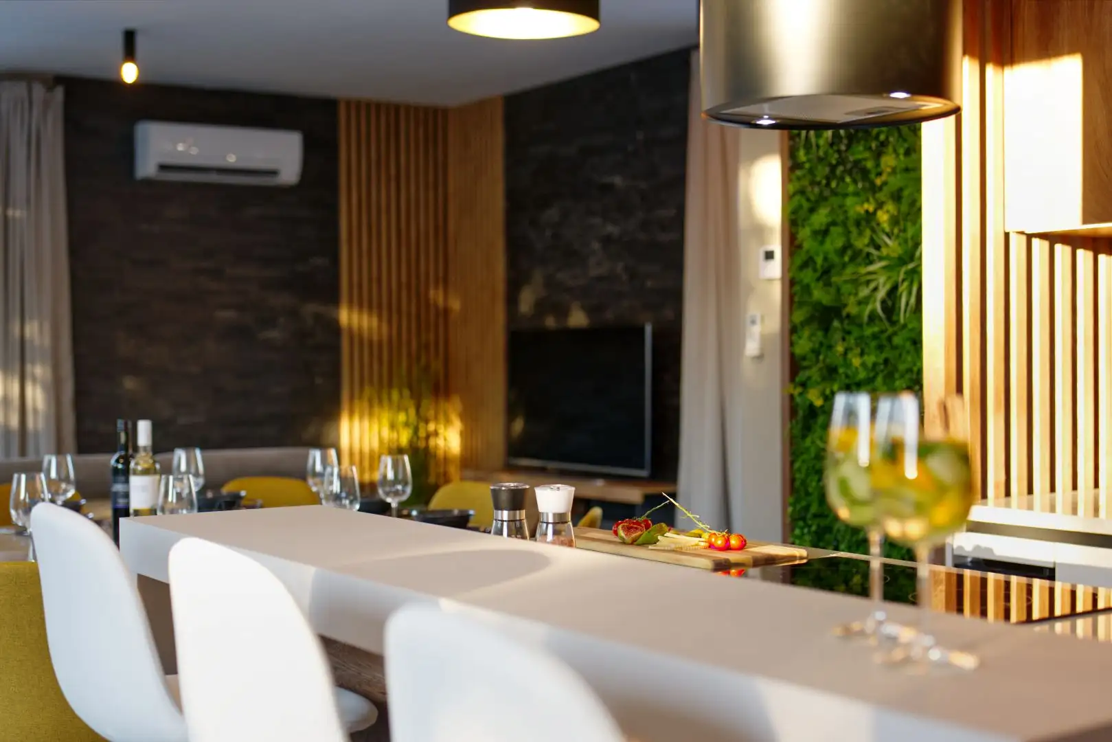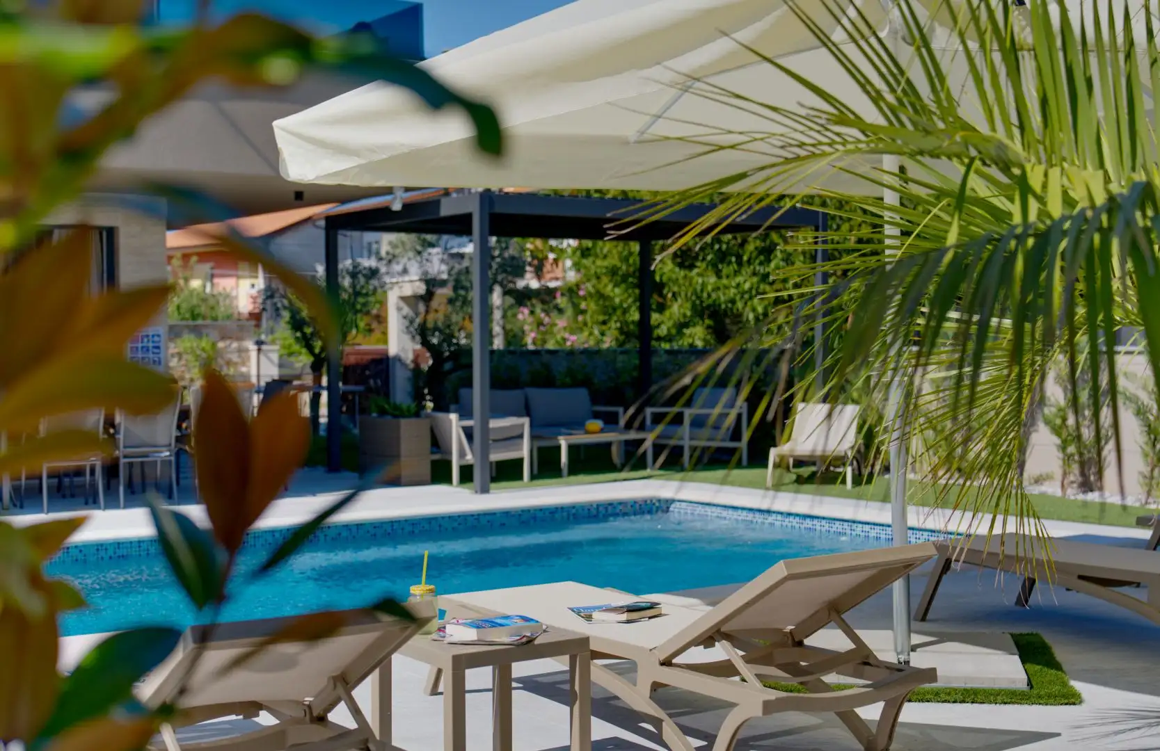 Вилла оборудована кондиционером и теплым полом, работающим от теплового насоса, ПВХ окнами с тройным остеклением и электрическими жалюзи, подогреваемым бассейном размером 8x4 метра с стеклянной мозаикой, полностью оборудованной уличной кухней, электрическими воротами, системой сигнализации и видеонаблюдения, парковкой для трех-четырех автомобилей с зарядной станцией для электромобилей и биосептиком, с подключением к городскому канализационному хозяйству, ожидаемым в 2024/2025 годах.