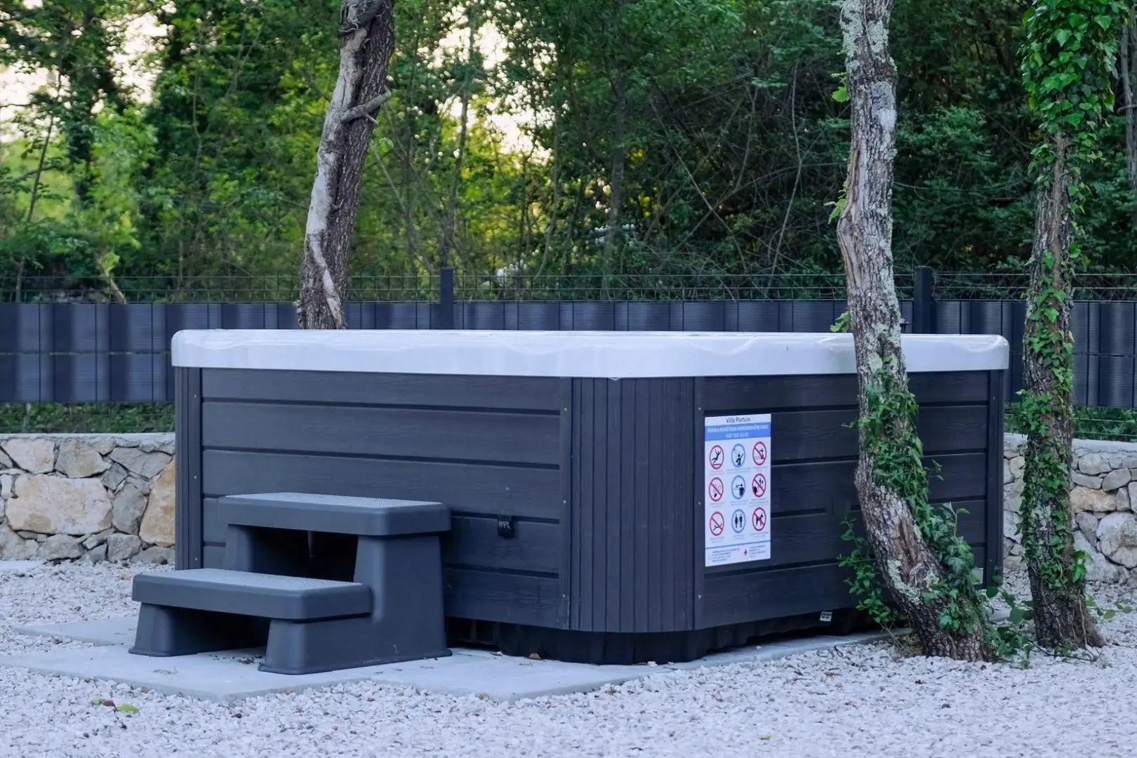Двор полностью огорожен и профессионально оформлен, обеспечивая полную гармонию благодаря подогреваемому бассейну с зоной для загара, джакузи, уличной сауне и детской площадке. Отличное расположение и пространственная организация предоставляют идеальную возможность для комфортной семейной жизни или высококлассной инвестиции в туристический бизнес по аренде.