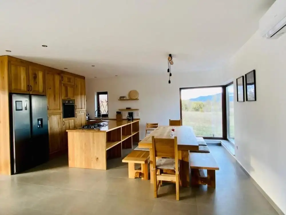 Внутренняя лестница ведет на верхний уровень, где расположены еще три спальни, каждая со своей ванной комнатой и выходом на террасу с панорамным видом на пышную зелень и гору Учка.