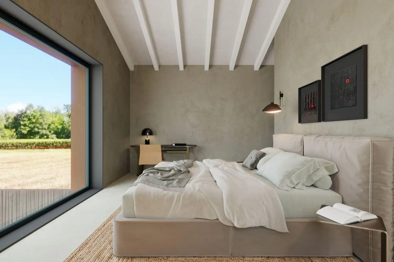 Внутренние лестницы ведут на верхний этаж, который спроектирован как частная зона для сна. Этот уровень включает коридор и две просторные спальни, каждая из которых имеет собственную ванную комнату для обеспечения максимального комфорта и уединения. Обе спальни имеют прямой доступ к большой террасе площадью примерно 33 квадратных метра, идеальному пространству для утреннего кофе, отдыха на солнечном свете или спокойных вечеров с видом на окружающую зелень.