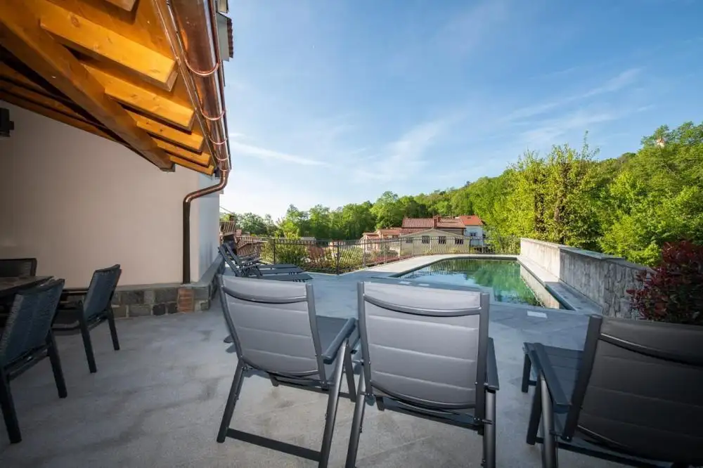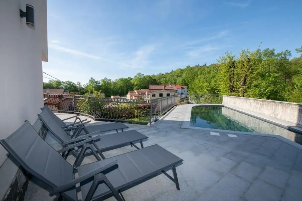 Продается вилла с бассейном в Матульи, над Опатией, с видом на море и остров Црес!