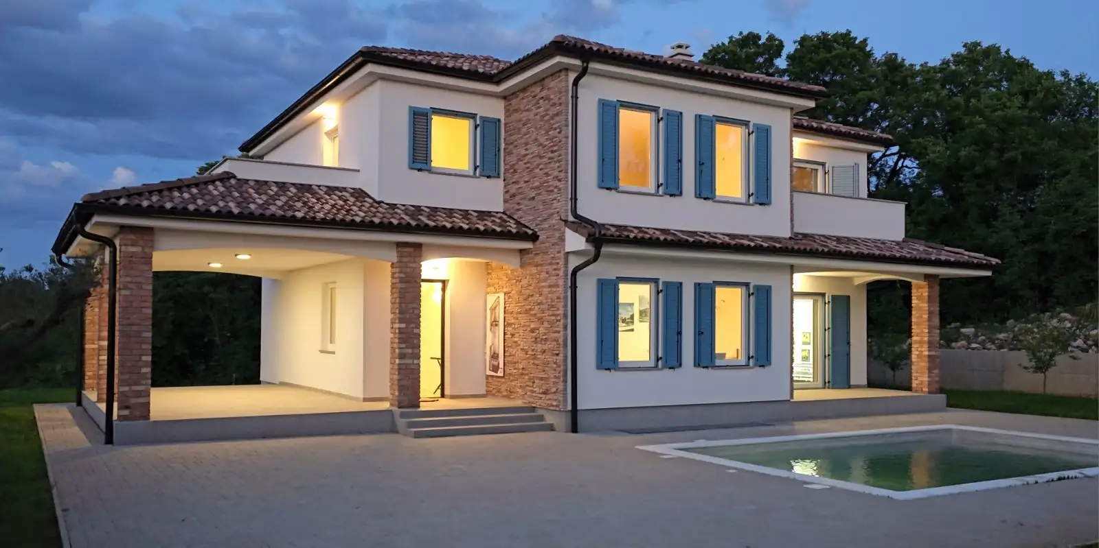 На острове Крк, в тихой деревне Добриње, продается прекрасная вилла с синими ставнями и бассейном, всего в 4 км от моря.