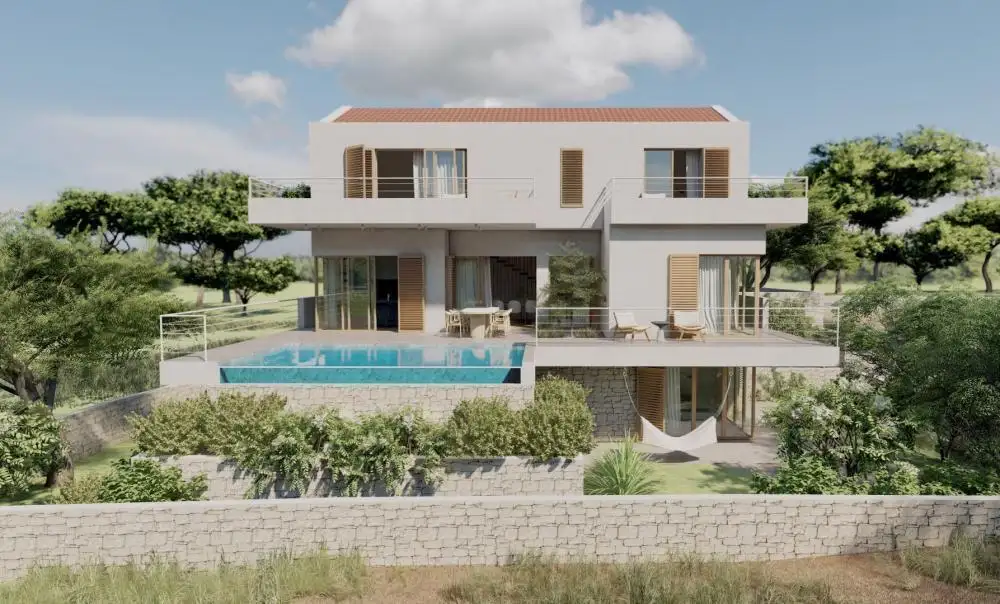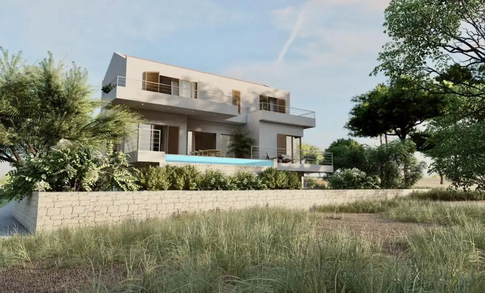 Строящаяся современная вилла с бассейном на острове Паг в ЯКИШНИЦЕ, всего в 200 метрах от моря!