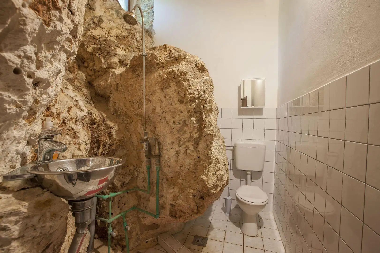 Гостевой дом включает в себя гостиную, кухню и столовую, большую спальню и ванную комнату. Его уникальная особенность? Большие природные скальные образования в его интерьере, предлагающие необычный стиль декора.