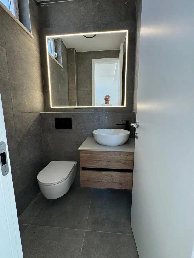 Дом будет продан под ключ. Отопление будет проводиться по полу на обоих этажах и будет полностью кондиционировано.