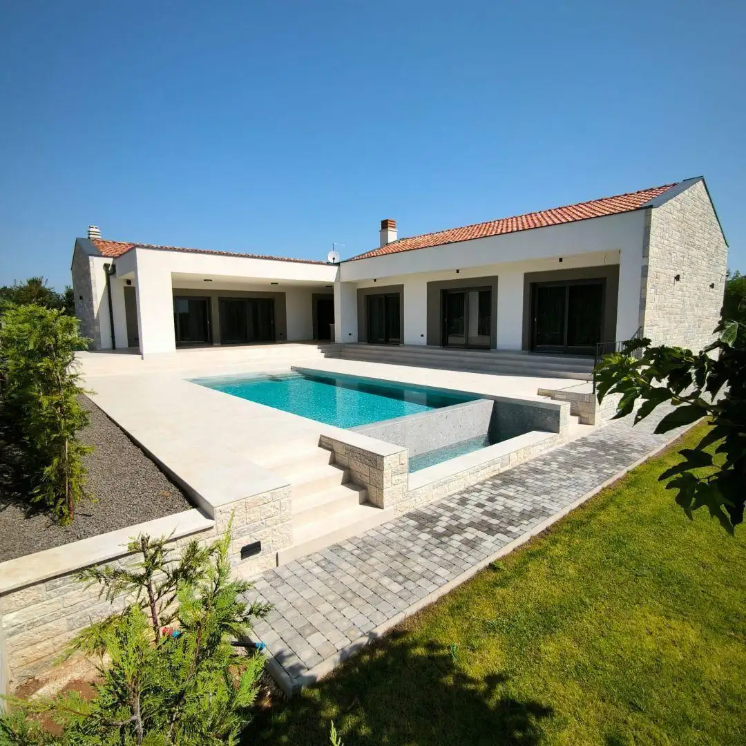 Мы с гордостью представляем этот изысканный роскошный одноэтажный дом, построенный в начале 2024 года. Эта вилла, расположенная недалеко от оживленного города Ровинь и оснащенная всеми необходимыми удобствами для круглогодичного проживания, предлагает идеальное сочетание спокойствия и уединения, а также превосходного качества. -уровень мастерства во всем. Эта недвижимость представляет собой исключительную возможность, независимо от того, ищете ли вы идеальный семейный дом или надежную инвестицию с гарантированной прибылью.