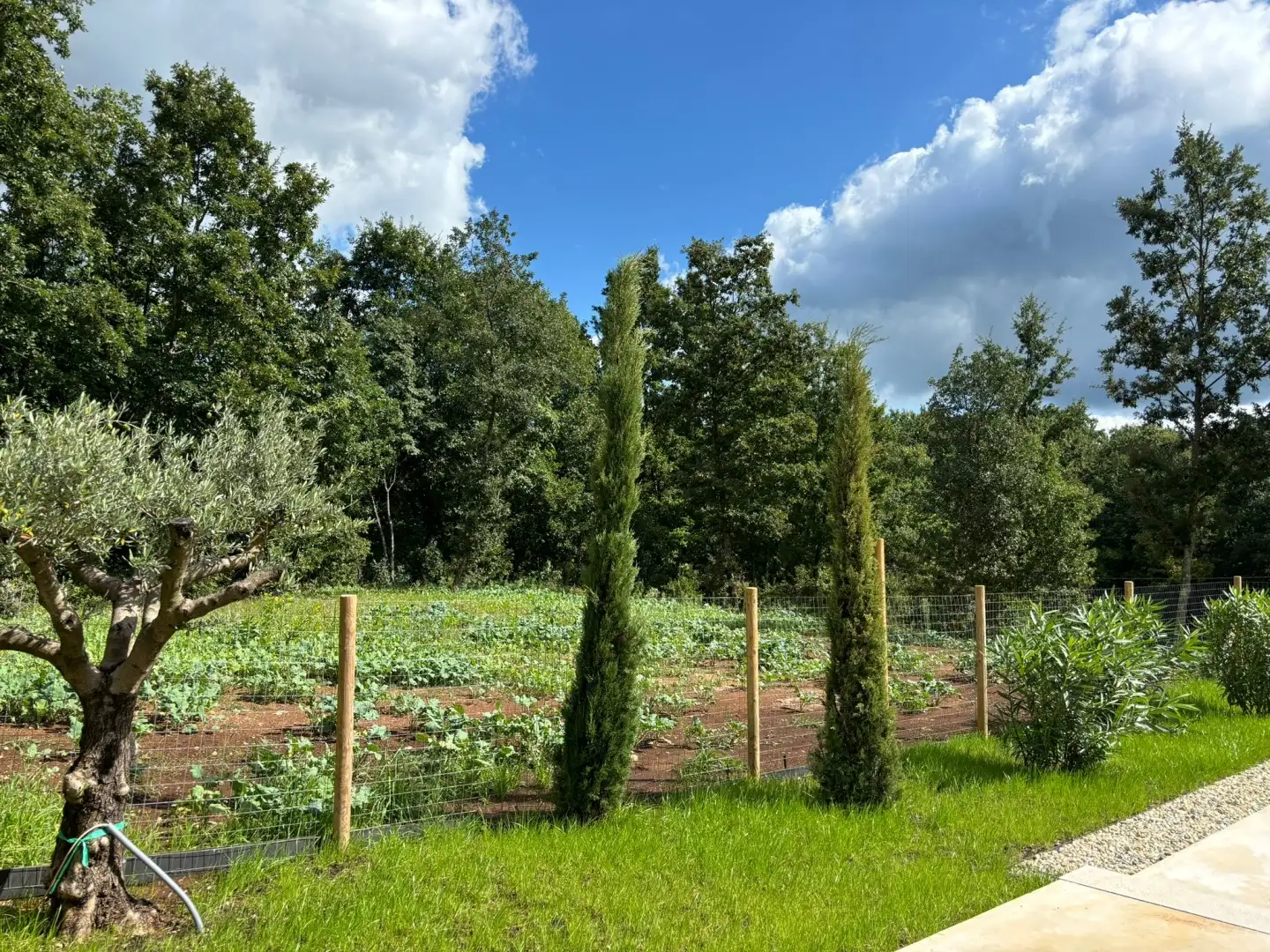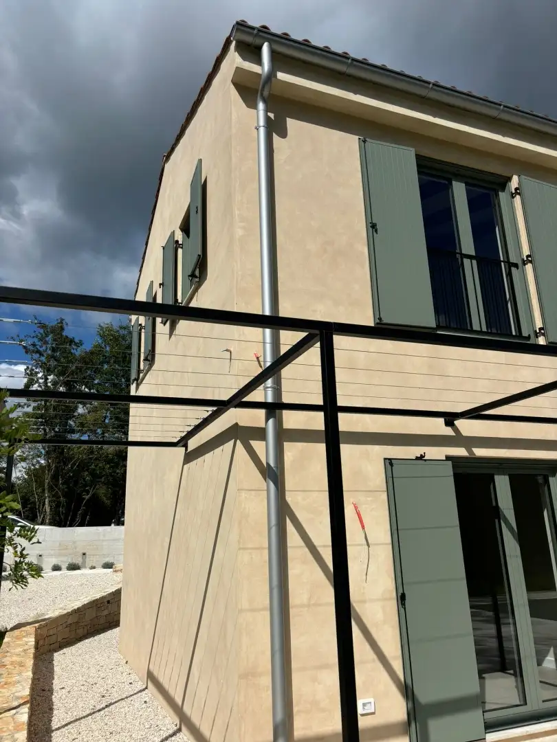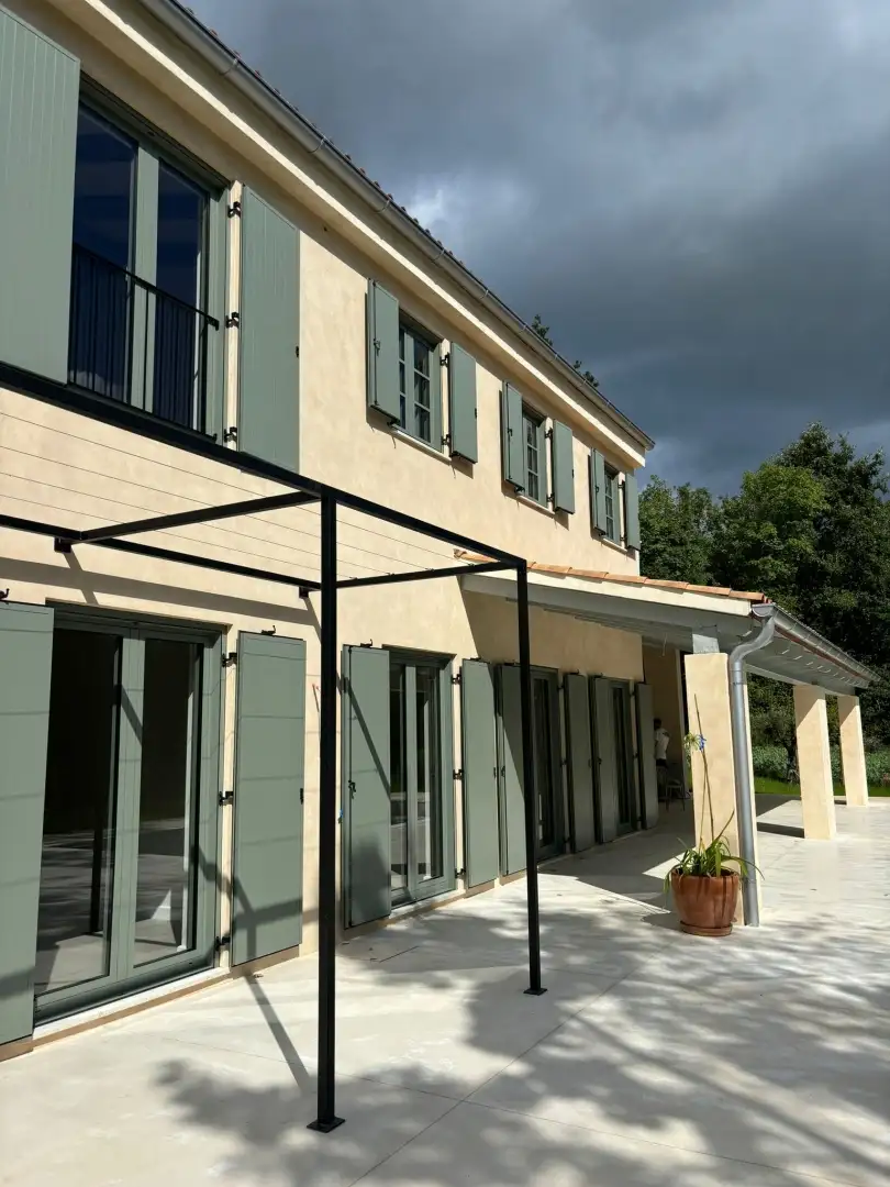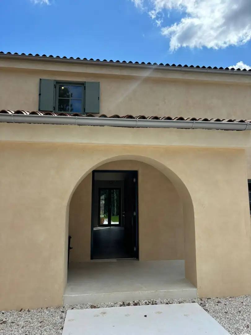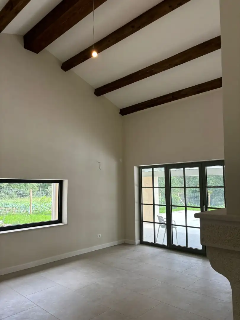 Вилла занимает 180 кв.м. на двух уровнях и имеет вытянутую прямоугольную планировку с продуманными открытыми пространствами, включая перголы и навесы, выходящие на юг. Она окружена сельскохозяйственными угодьями, что обеспечивает долгосрочную защиту потрясающих видов и спокойной обстановки.