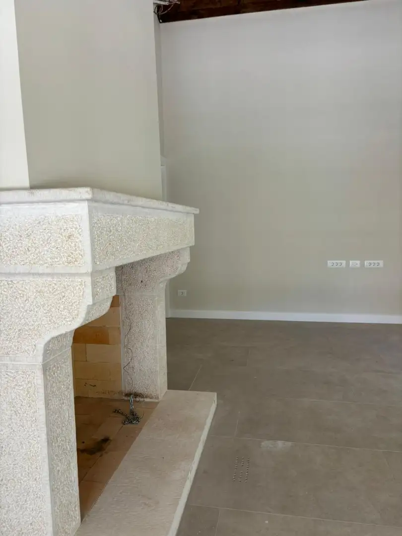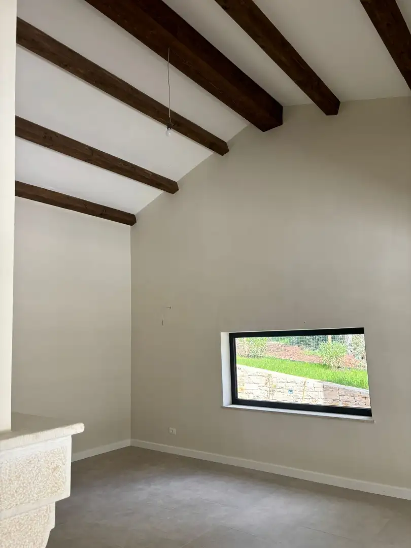 Построенная с гармоничным сочетанием камня, дерева и бетона, вилла демонстрирует минималистичные линии с теплыми традиционными материалами, создавая баланс современного комфорта и деревенского очарования. На первом этаже находится открытая гостиная с дровяным камином, полностью оборудованная кухня и столовая, туалет для гостей, подсобное помещение и спальня с ванной комнатой. Большие стеклянные двери обеспечивают прямой доступ к террасе, бассейну и природному окружению.