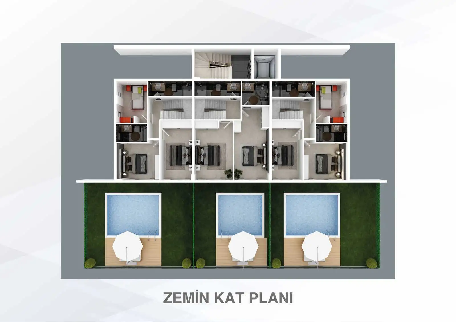 Садовые дуплексы с собственным бассейном, планировкой 2+1, 3+1 и 4+1, площадью от 100 м2;
