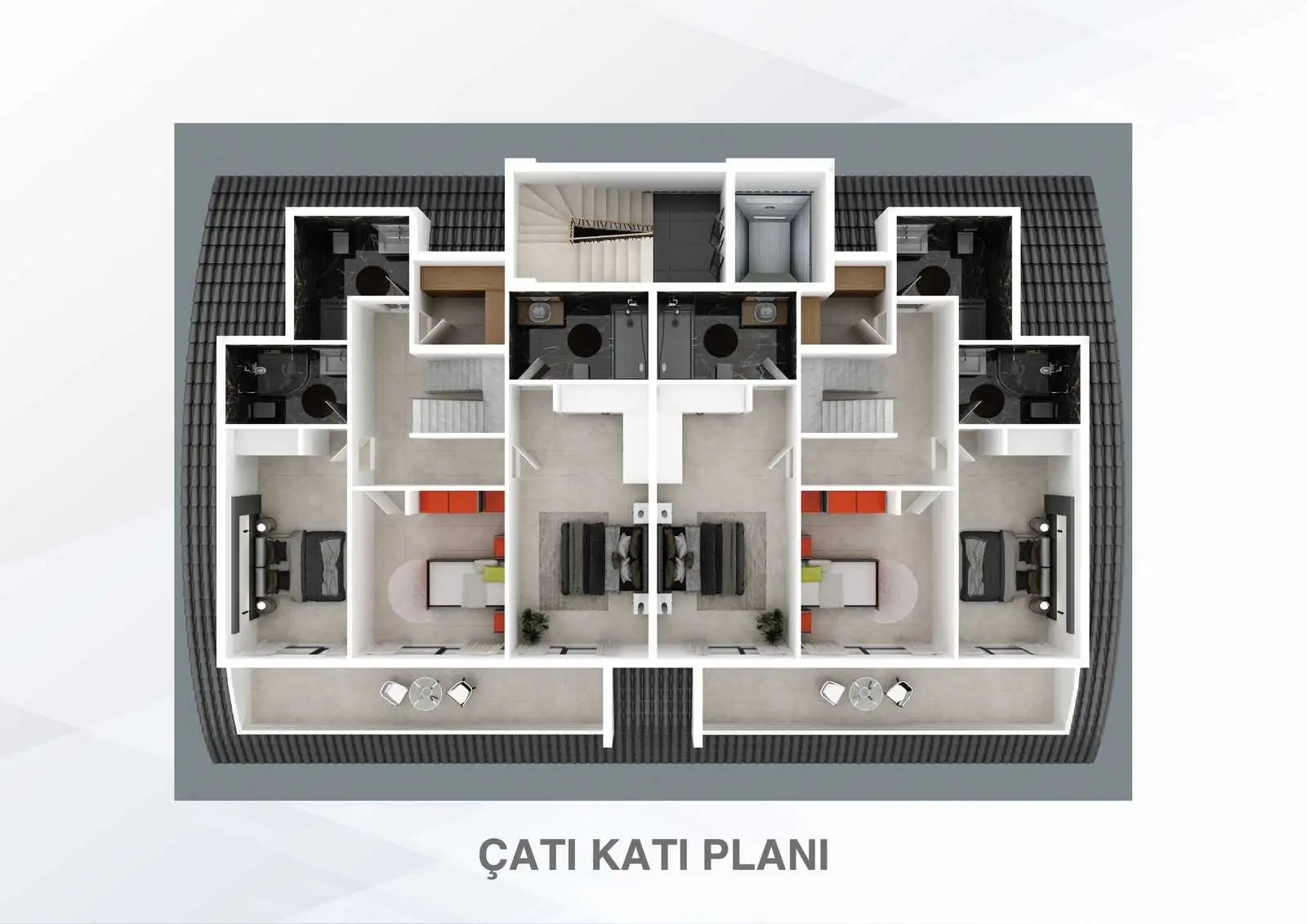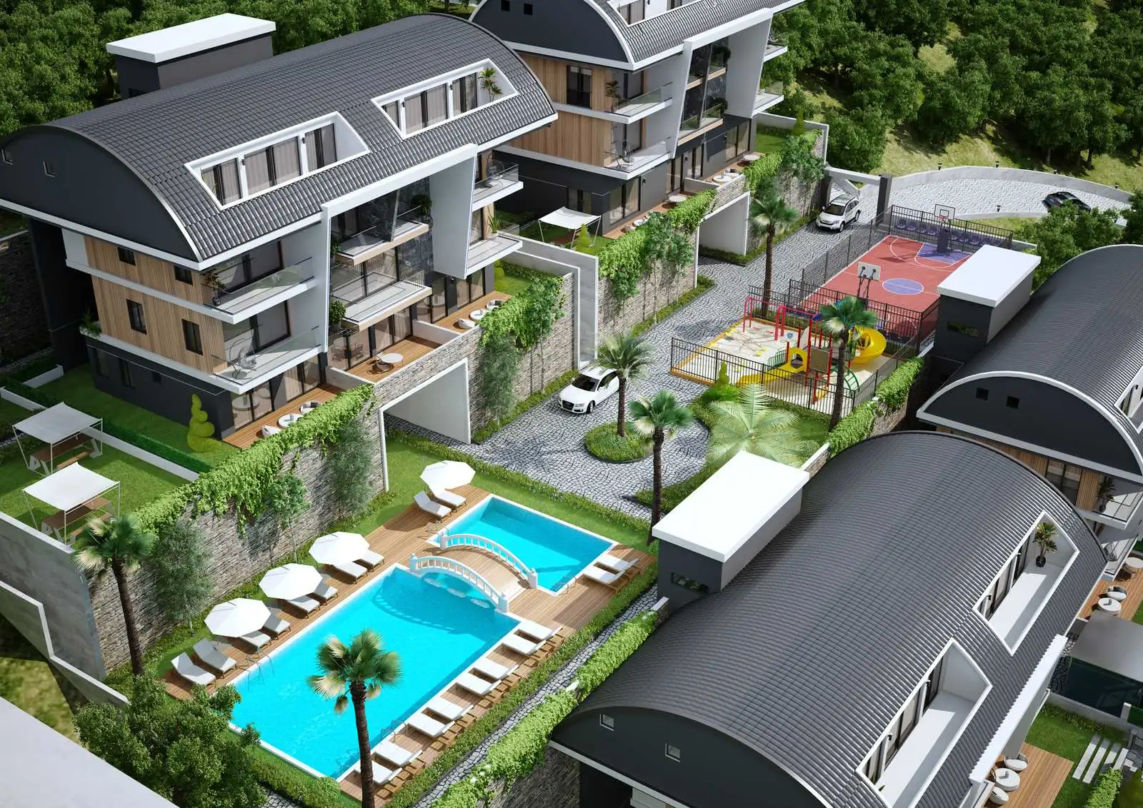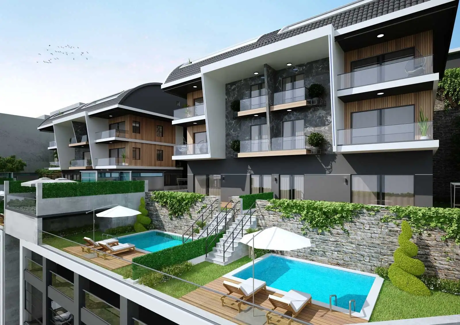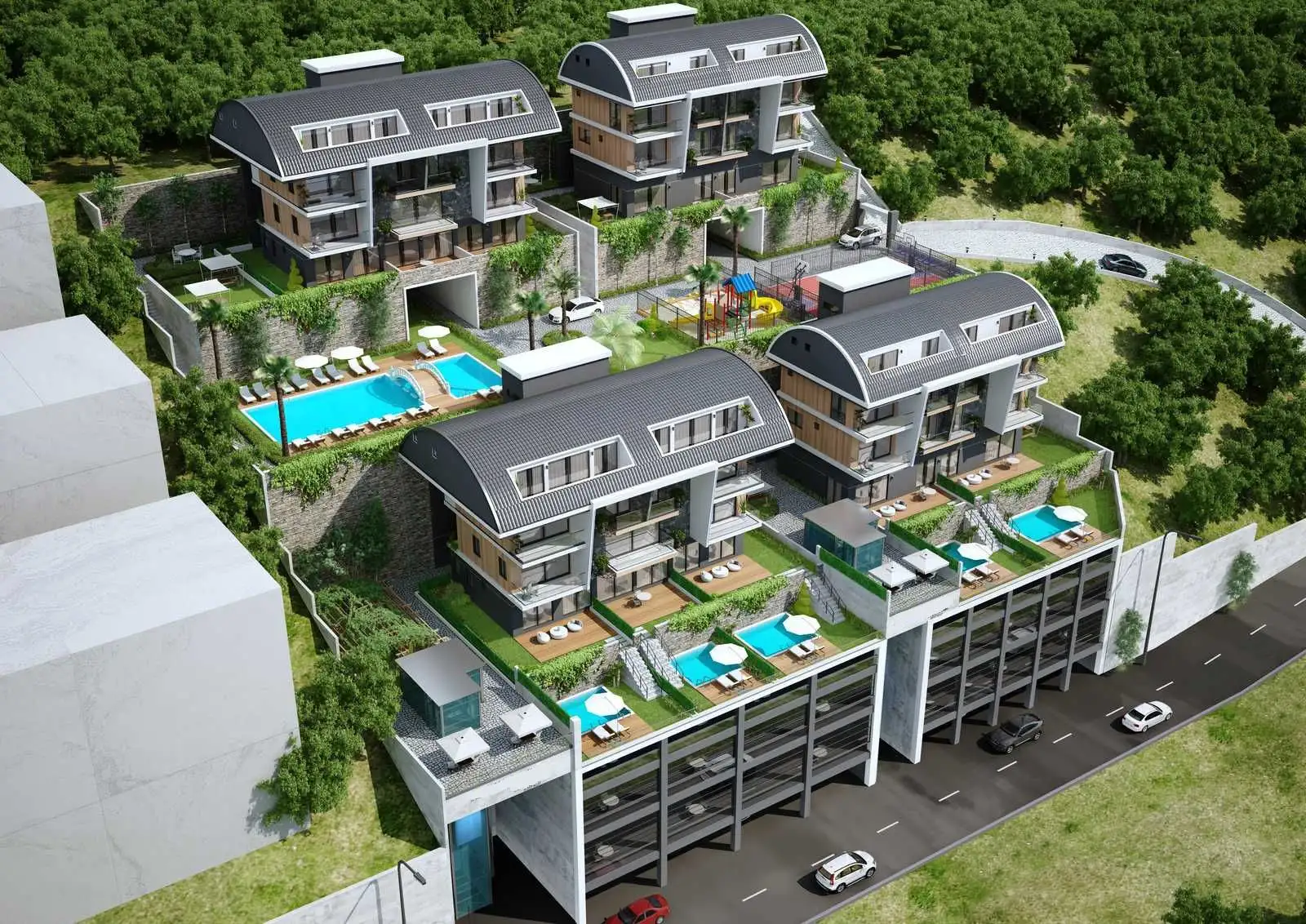Что в комплексе: Новый масштабный комплекс будет включать 18 дуплексов и инфраструктуру, соответствующую пятизвездочному отелю. С территории комплекса и каждой квартиры будет открываться потрясающий панорамный вид на Средиземное море и Аланию.