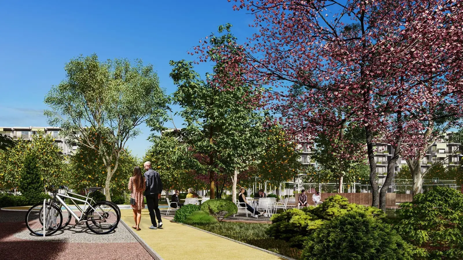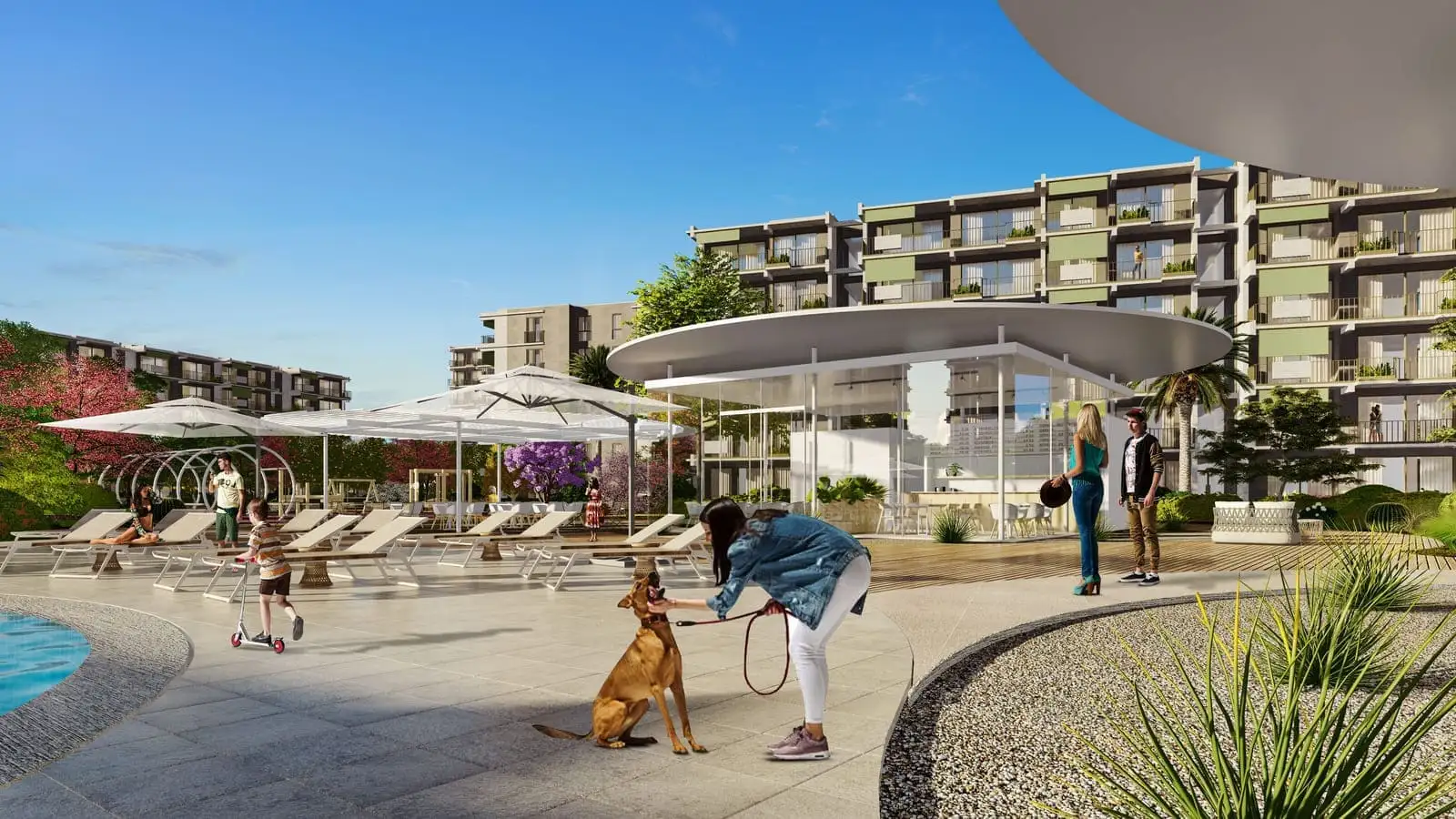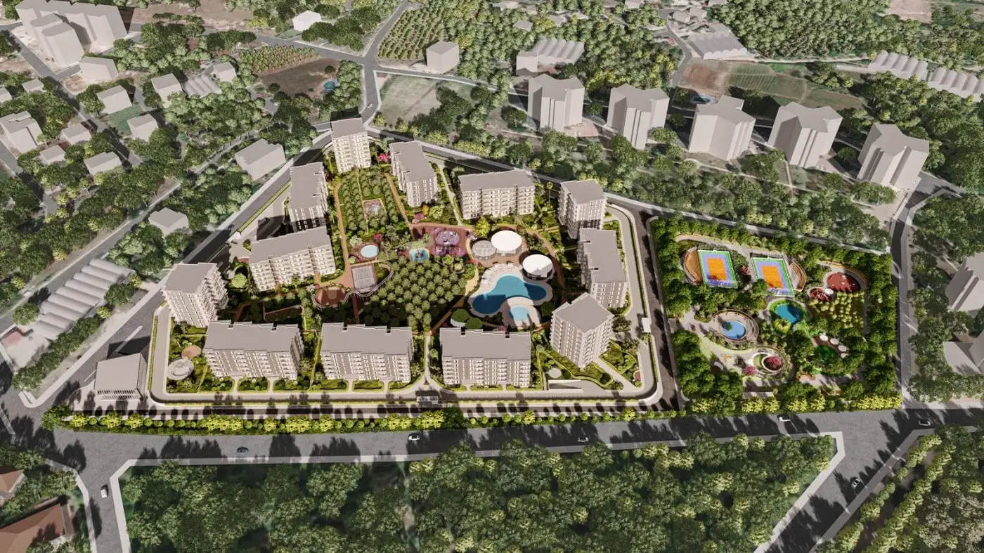 Что в комплексе: На закрытой территории с ландшафтным дизайном площадью 43 000 м2 будет расположено 12 жилых блоков, цитрусовый сад, открытый бассейн, зона отдыха с шезлонгами и кафе у бассейна, детская площадка, беседки для отдыха, мини гольф, теннисный корт, баскетбольная площадка, специальный парк для выгула и тренировок домашних питомцев, дорожки для вело и пеших прогулок, кинотеатр на открытом воздухе, зона для Шахмат на открытом воздухе, игровая комната, мини клуб, кинотеатр, открытая и крытая парковки, генератор.