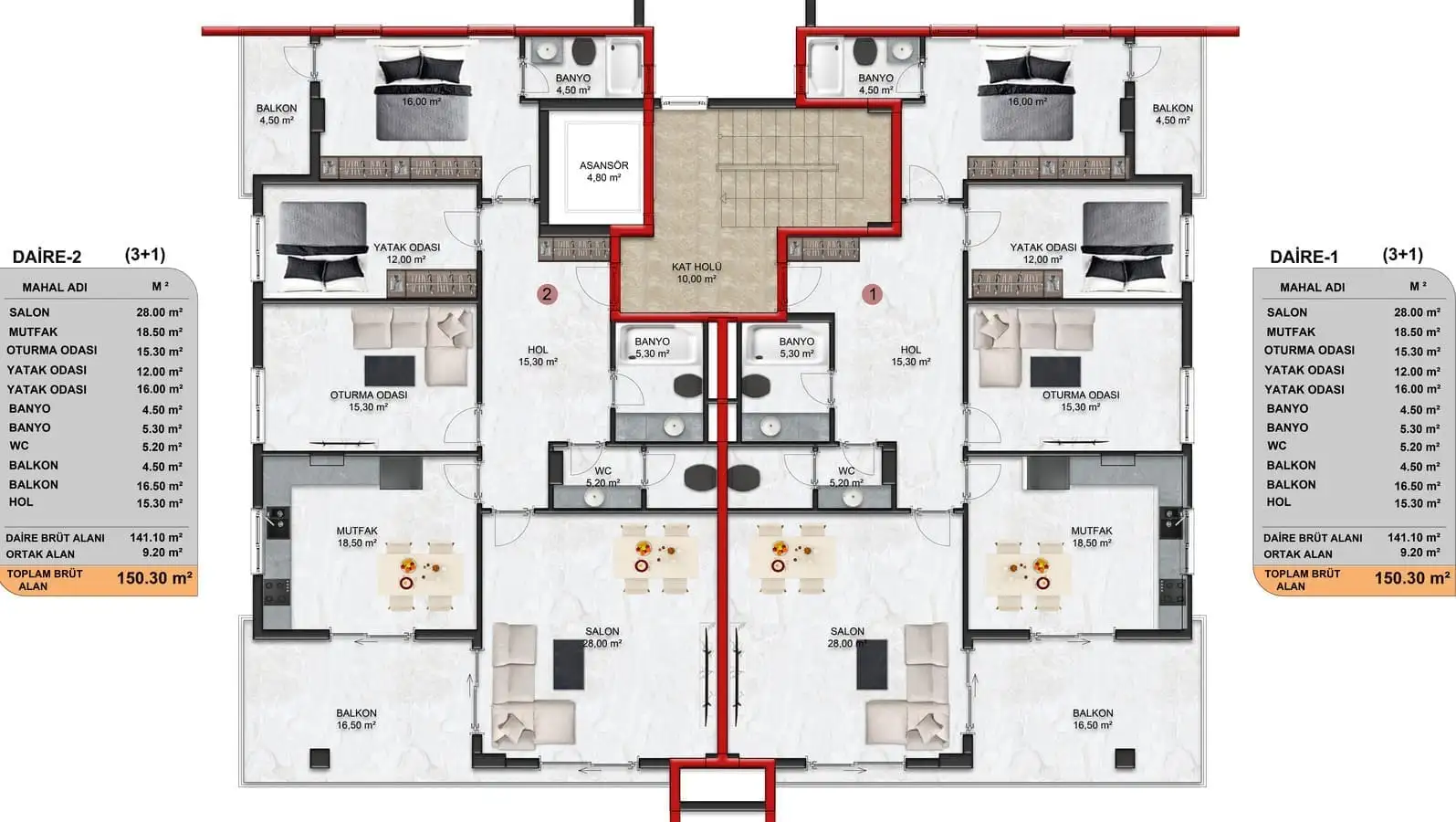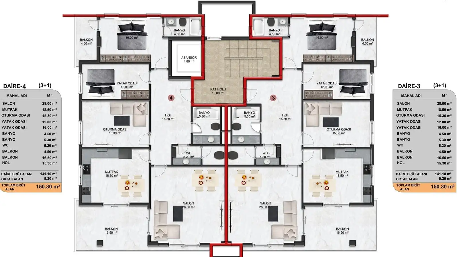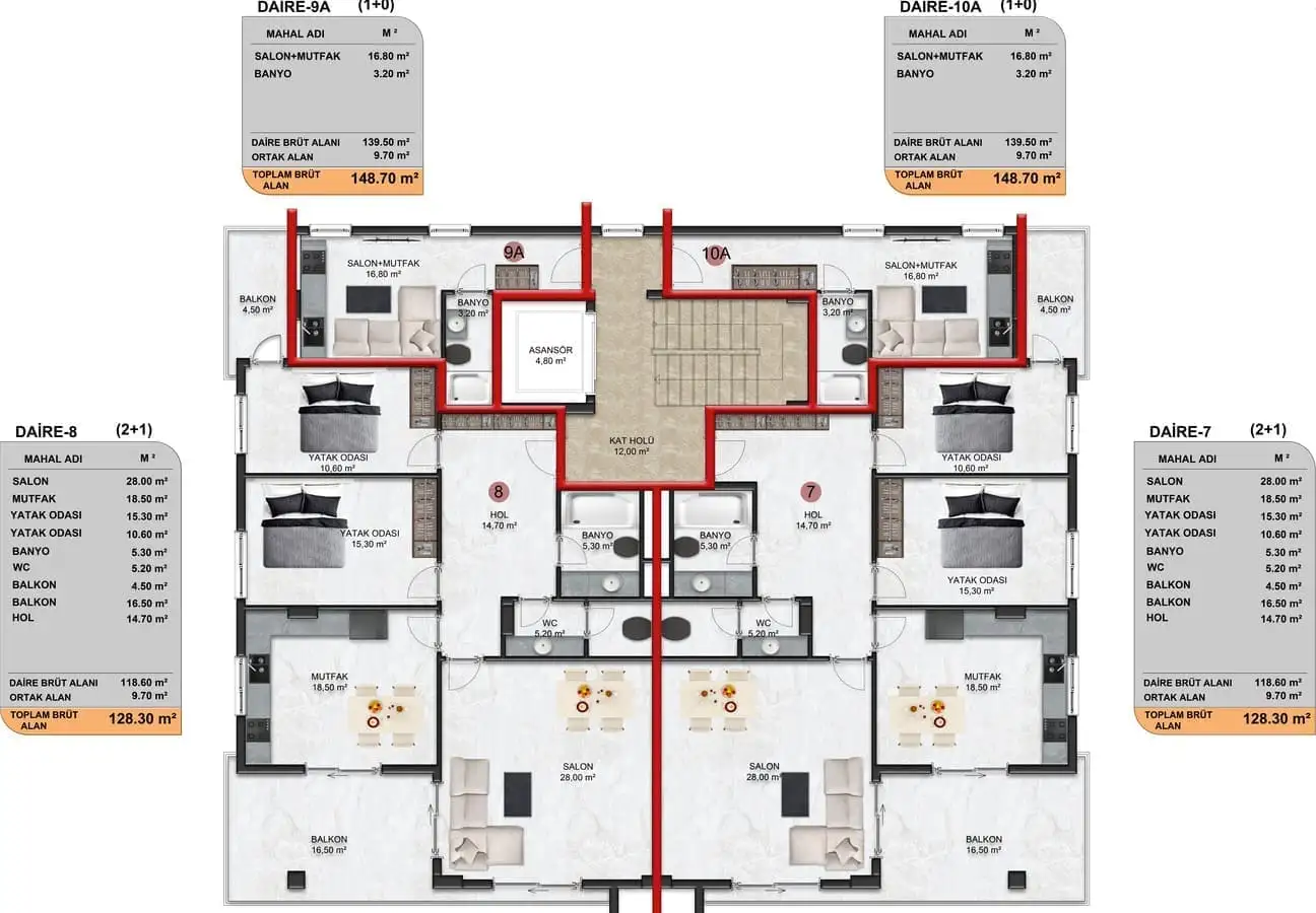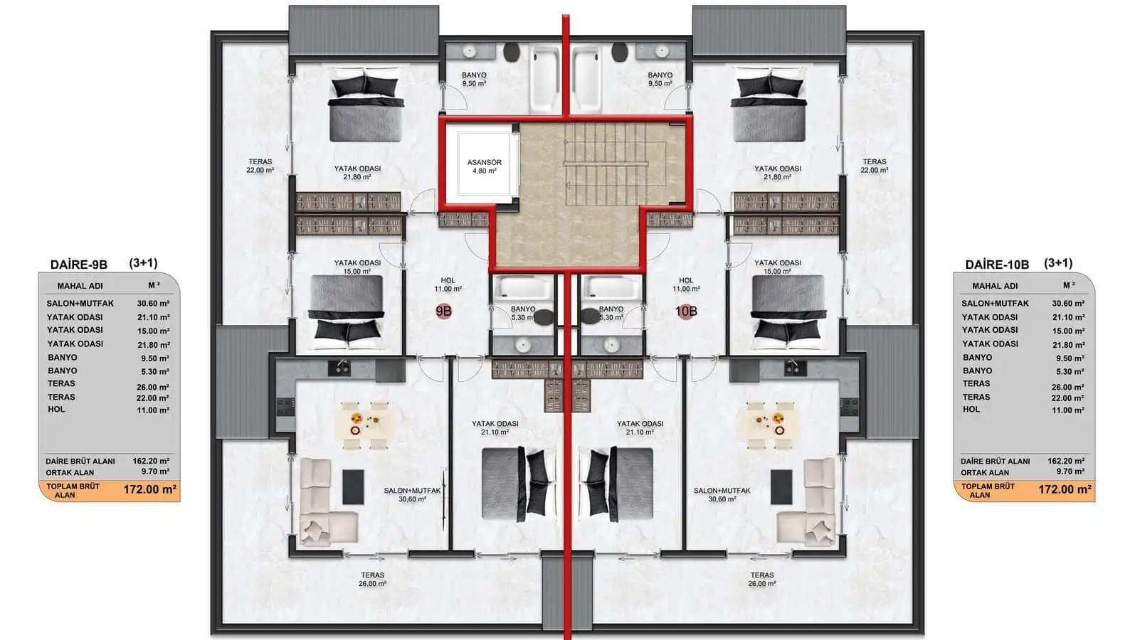 Внутри: К продаже представлены линейные апартаменты 3+1 площадью 150 м2.